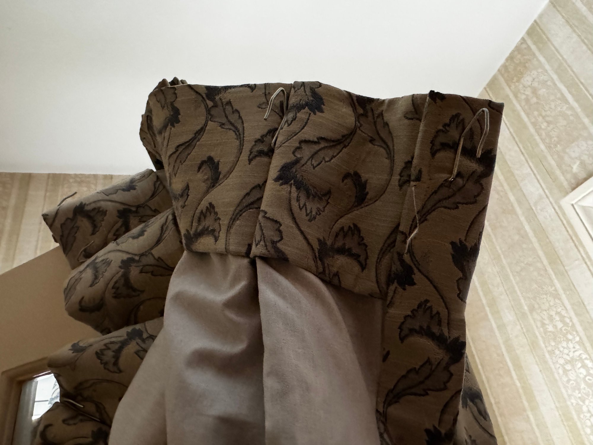Fully lined, high-end drapery - clean with no rips, tears or stains.