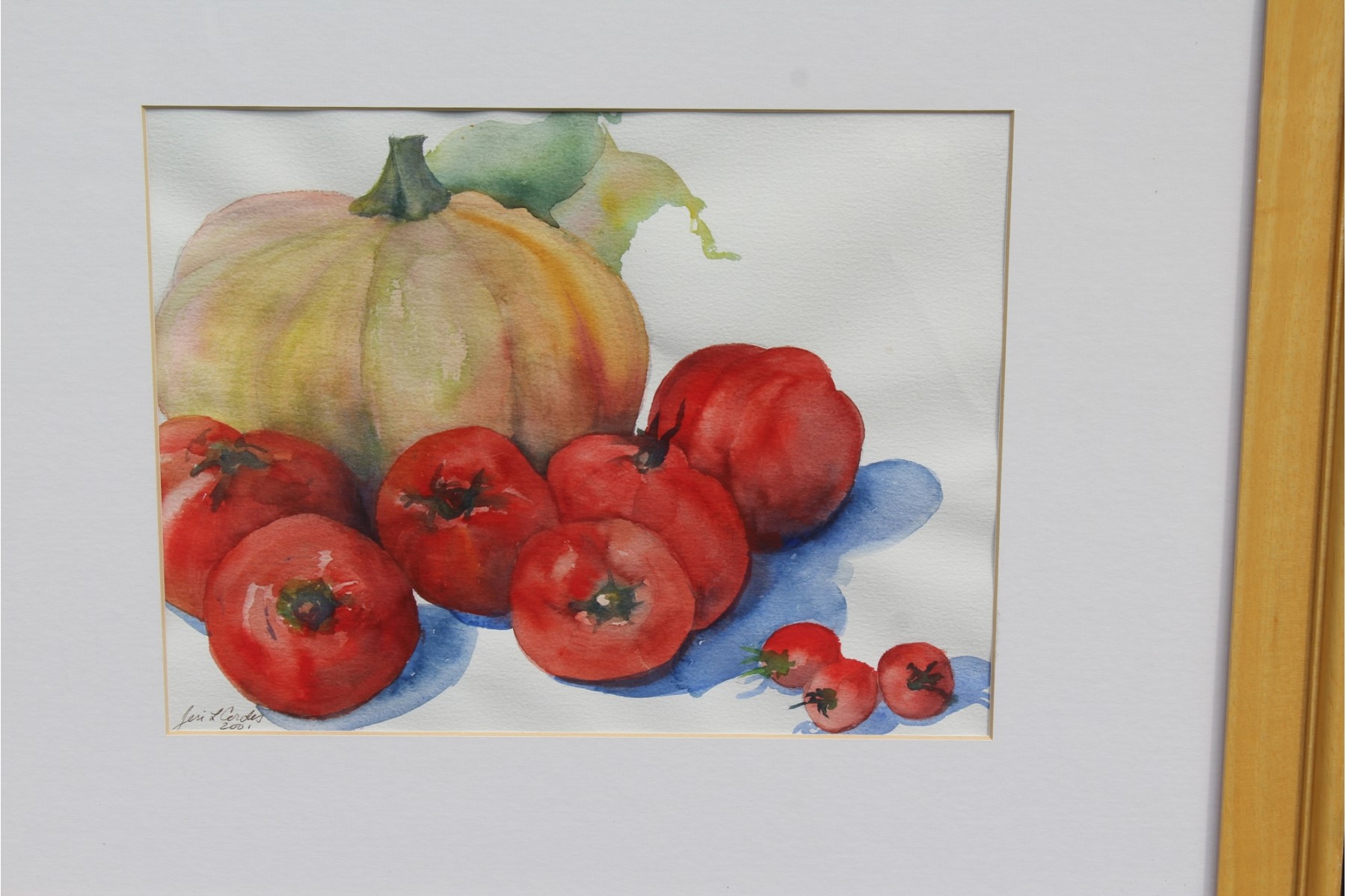 Lovely piece created by Jeri L. Cordes, nice vibrant watercolors, well composed. 19 x 23.5 framed, 9.5 x 12.5 visible, frame decent shape