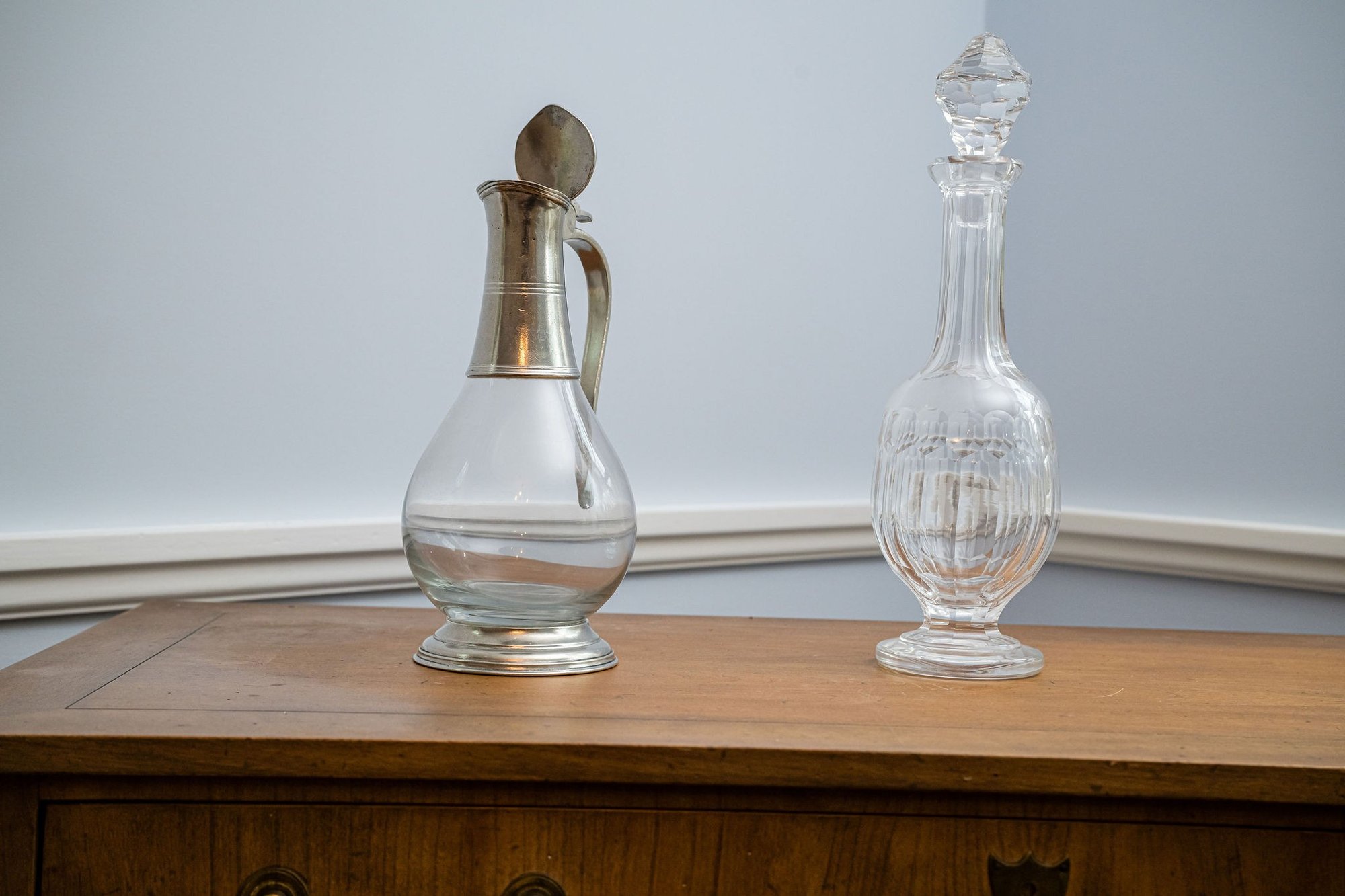 Barware pieces for your growing collection! One has a silver cap on neck and spout, both very nice with no damage.