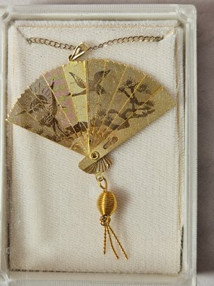 Lovely Vintage Gold Tone Asian Fan Necklace