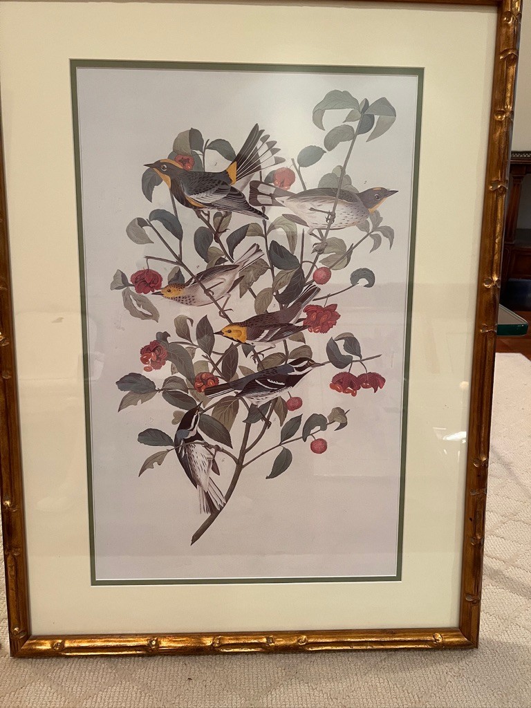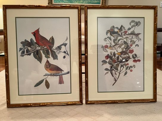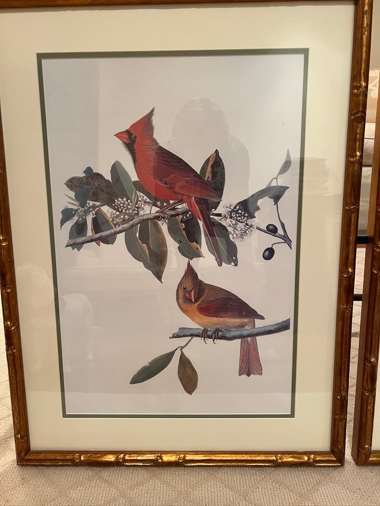 Gilt bamboo style framed prints of cardinal and birds, Framed well by Fitzgerald Galleries in WHB,