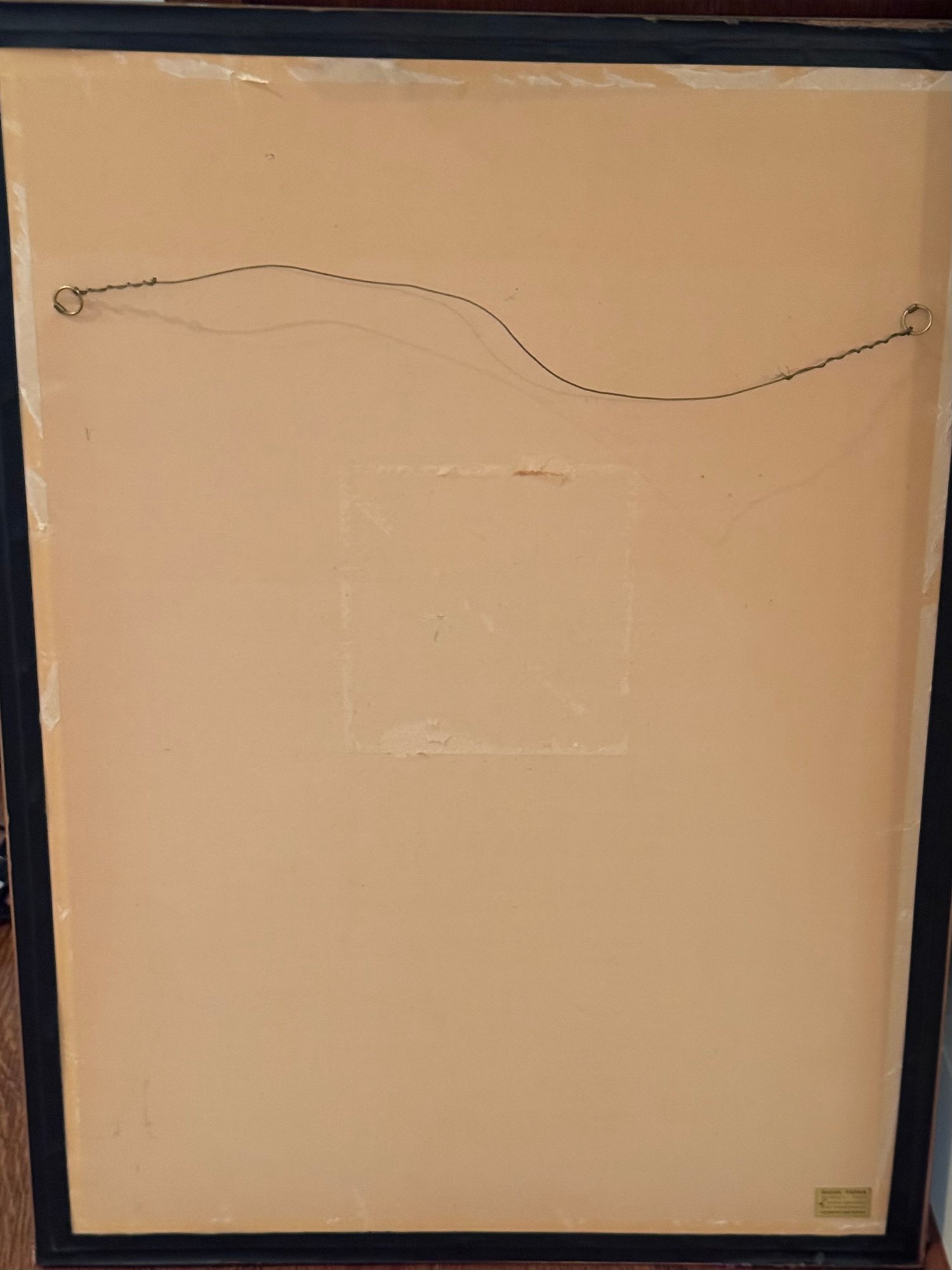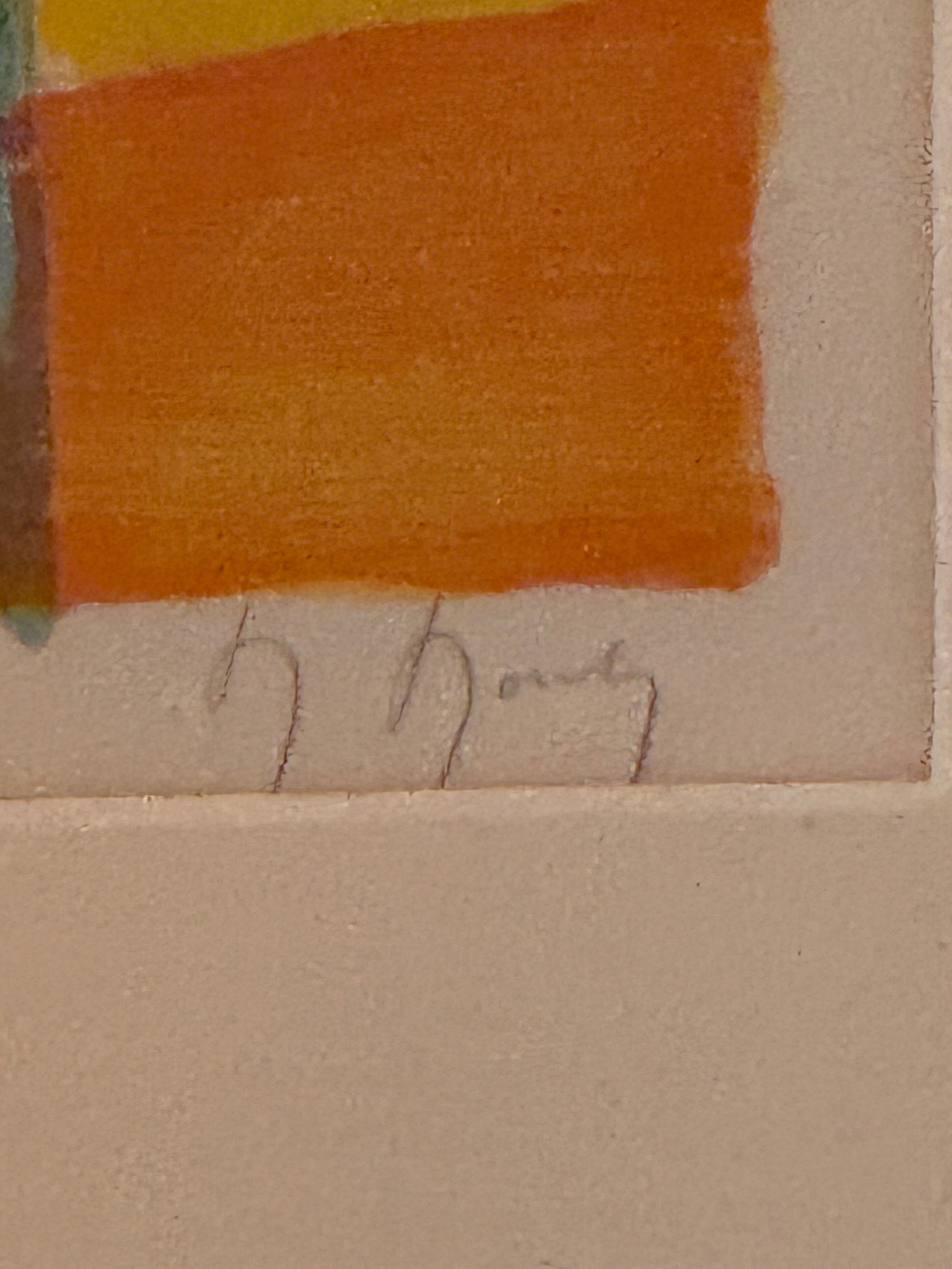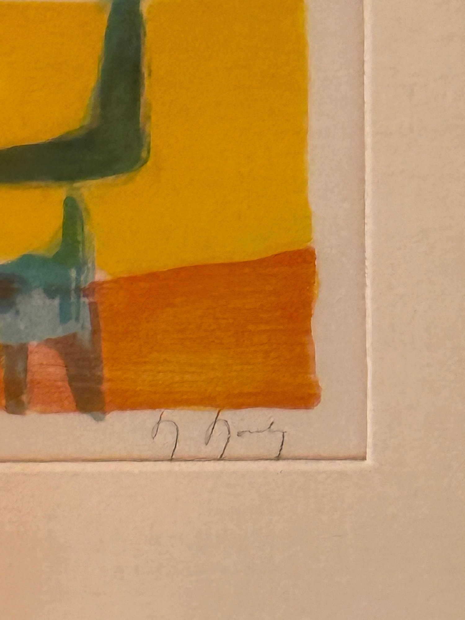 This is a lithograph by the French artist Marcel Mouly (1918–2008) who was influenced by Cubism and Fauvism. The work features a richly colored abstracted interior with a view of boats on the water. Marcel Mouly was known for his vibrant, energetic and colorful style. He mastered the technique of lithography, producing prints that are considered as significant as his paintings. Mouly's art is often described as being about "beauty and life" and is rooted in the School of Paris. This particular print is even more vivid in person.