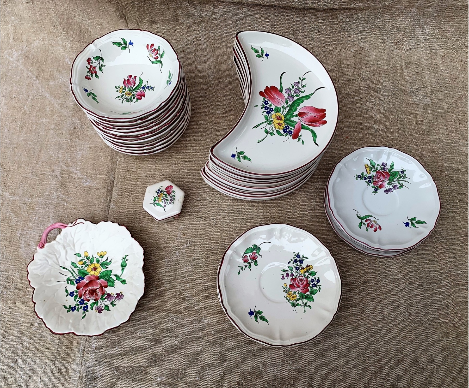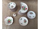 Cresent plates, bowls, cups and saucers and container. 8 1/2 inches (and smaller)
