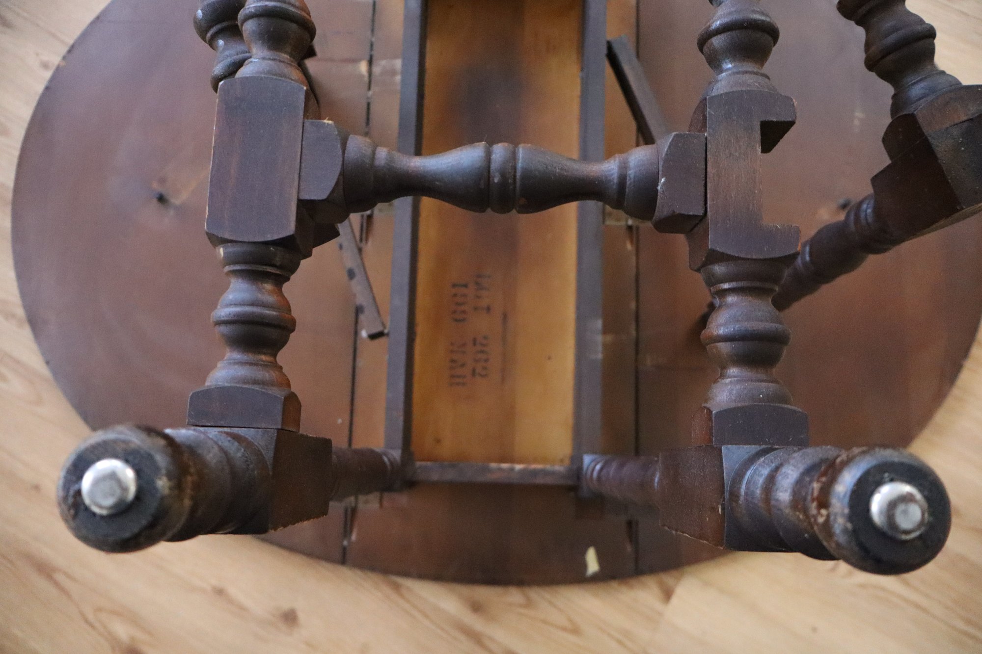 Features turned & squared legs, small bun feet with metal glides