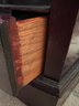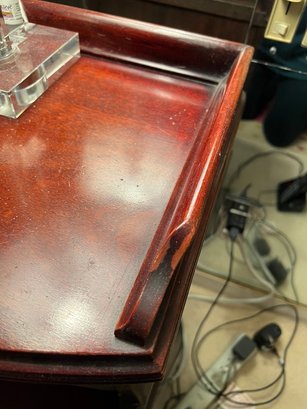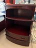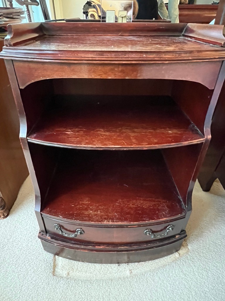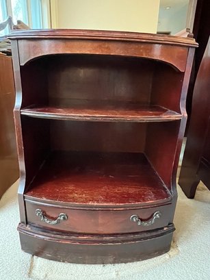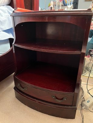 This is a solid mahogany traditional style open cabinet nightstand or end table with a drawer.