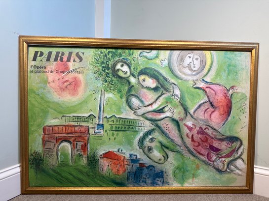 “Romeo and Juliette" by Marc Chagall, 1964 Unsigned Lithograph. The Lithograph is from an edition size of 5000. Advertising poster printed for the Office of French Tourism. Taken from a detail of the Ceiling of the Opera. This fragment is a tribute to Berlioz for Romeo and Juliette. It also includes pictures of the Place de la Concorde and the Arc de Triomphe. Published by the French Tourism Bureau, reference page #96 in 'Chagall's Posters - A Cataloque Raisonne', Sorlier, 1975 and printed by Mourlot.