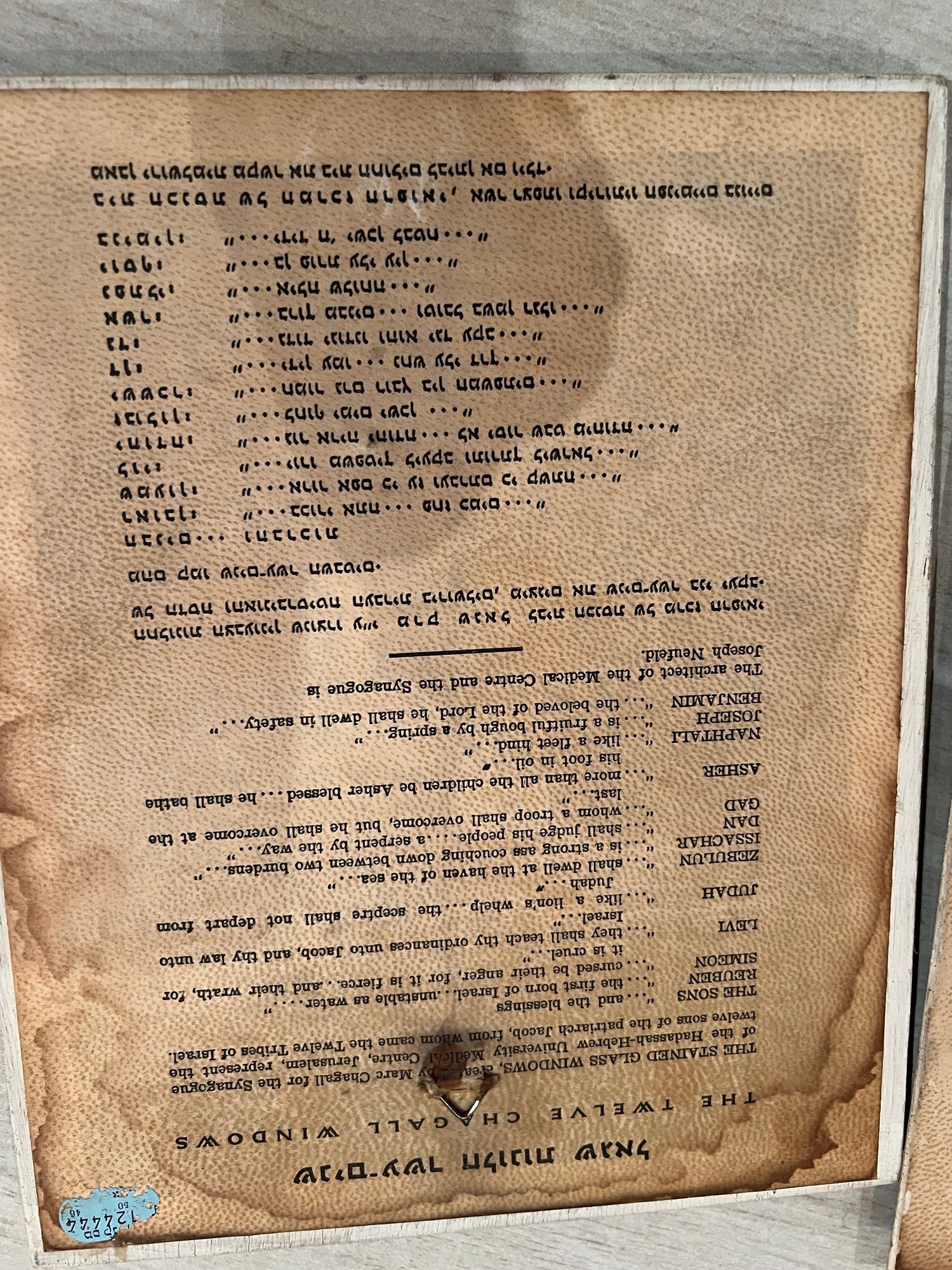 The windows symbolize the twelve Tribes of Israel, based on the blessings given by Jacob and Moses in Genesis and Deuteronomy.