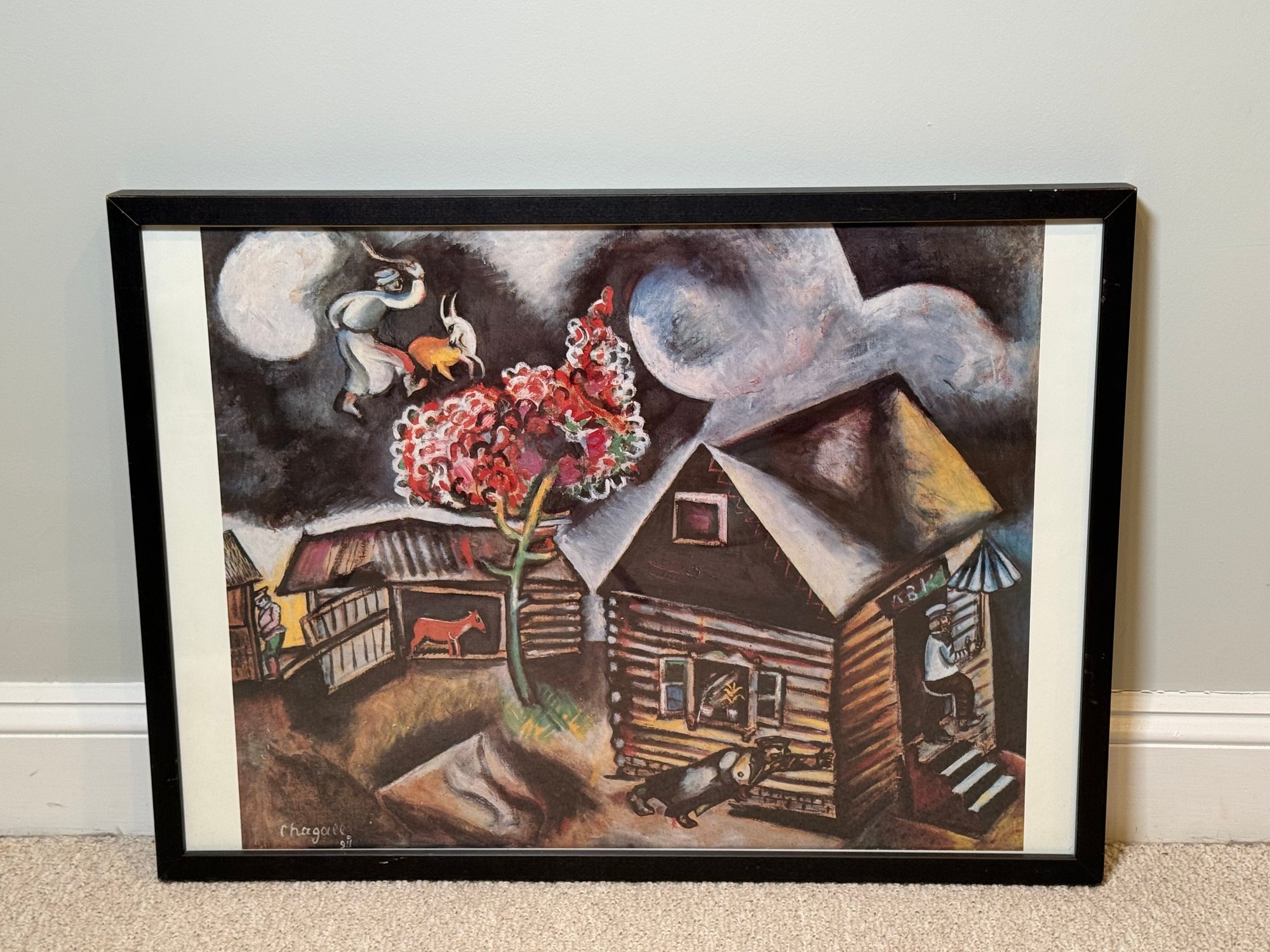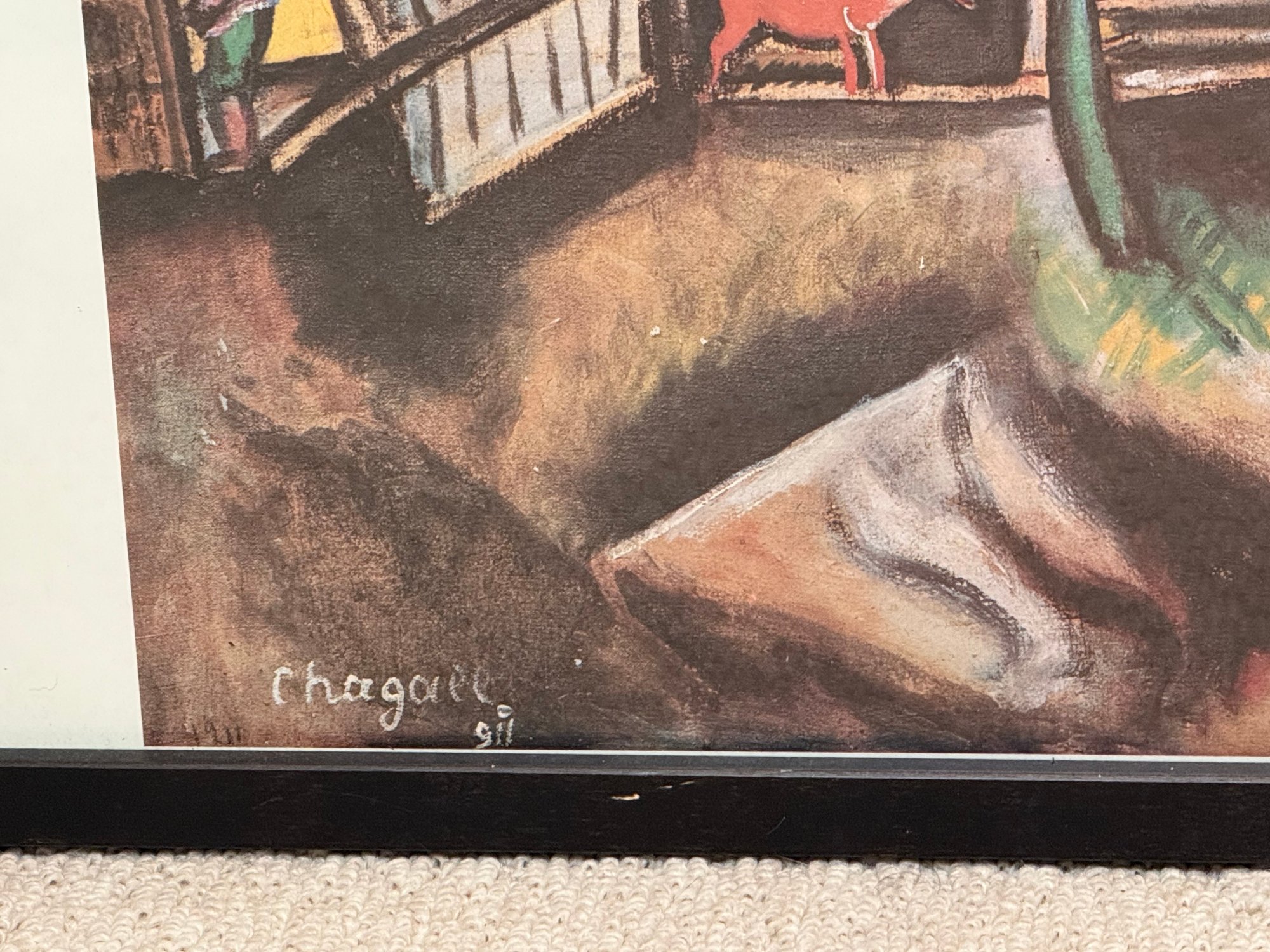The piece is signed in the plate (print) “Chagall” within the image and presented in a simple black frame.