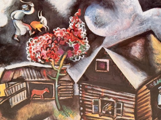 Marc Chagall (1887–1985) was a Russian-French artist associated with modernism whose work is celebrated for its poetic, dreamlike imagery rooted in Jewish folklore and Eastern European village life. His paintings often feature floating figures, animals, musicians, and romantic village scenes that blend fantasy with memory. Chagall became one of the most beloved artists of the 20th century, known for his vibrant color and storytelling symbolism.
