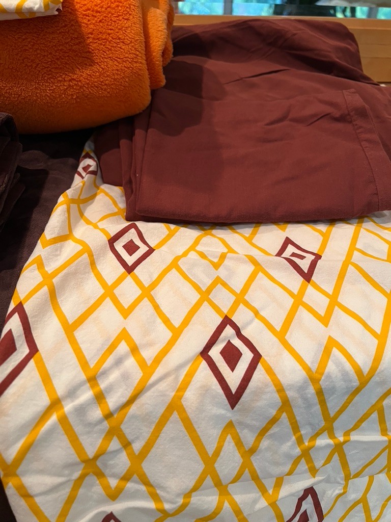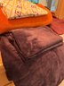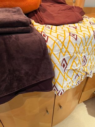maroon, wine, and orange, velour & fleece, Queen size linens