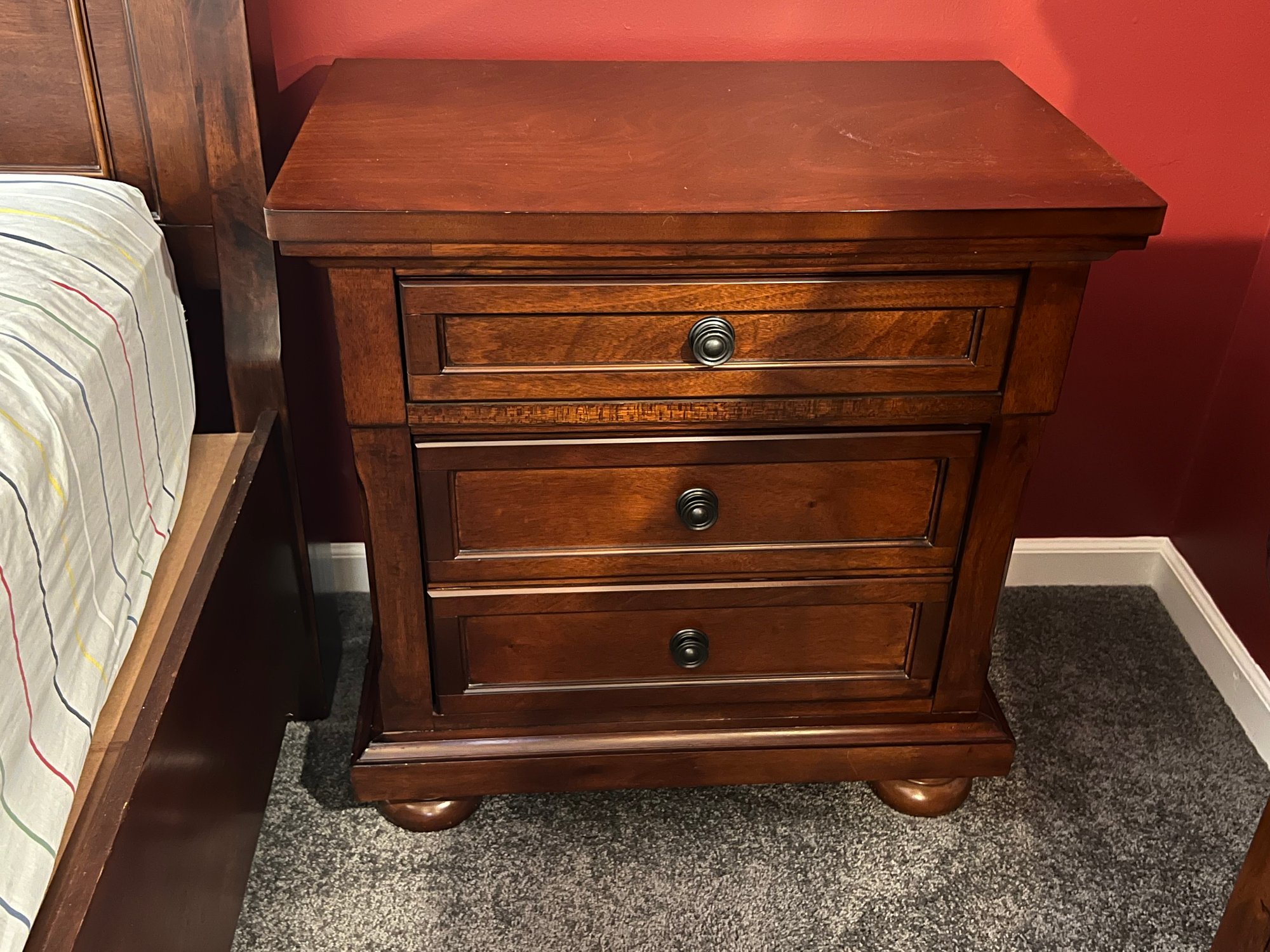 29" width, 18" depth, 30" height. Matches dresser. Good shape.