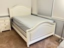White bedframe, some spots on it and some wear on headboard. Mattress not included. Headboard 56" width, 54" height, 81" depth. Matches bedroom set.
