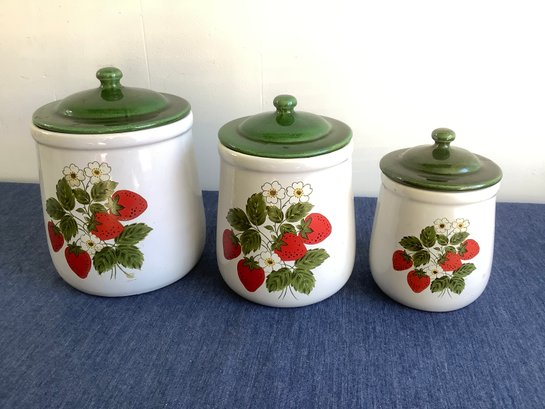 McCoy Strawberry Feilds Country Stoneware Canisters