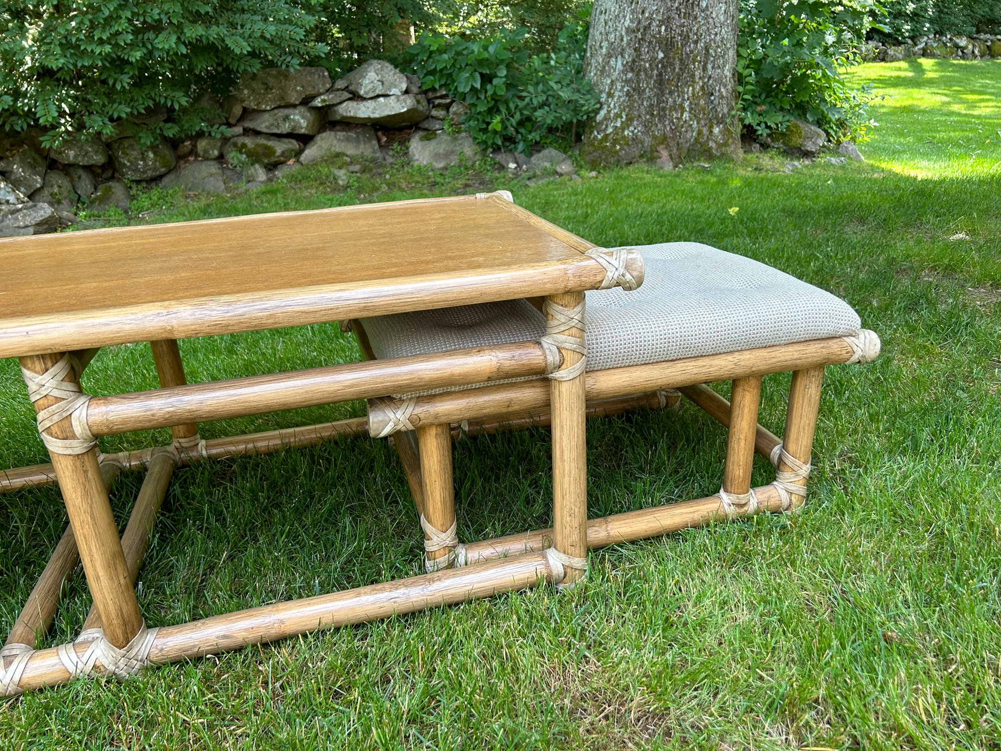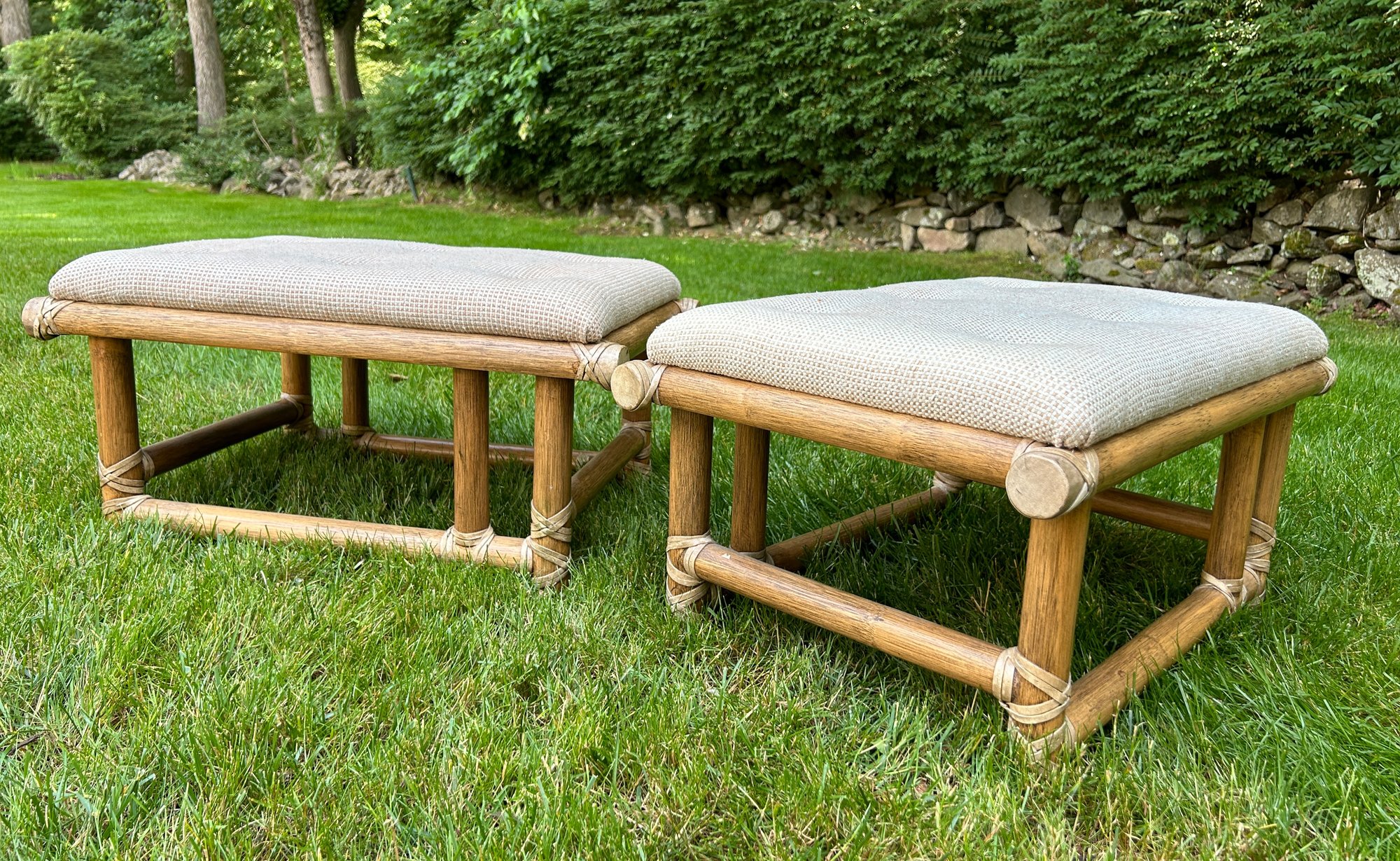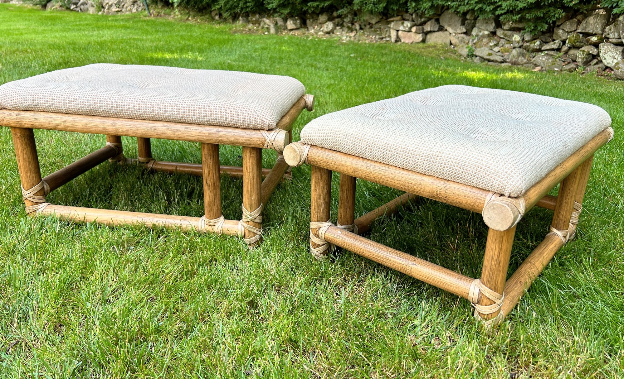 Can fit under the coffee table in another lot in this auction or kept as ottomans.
