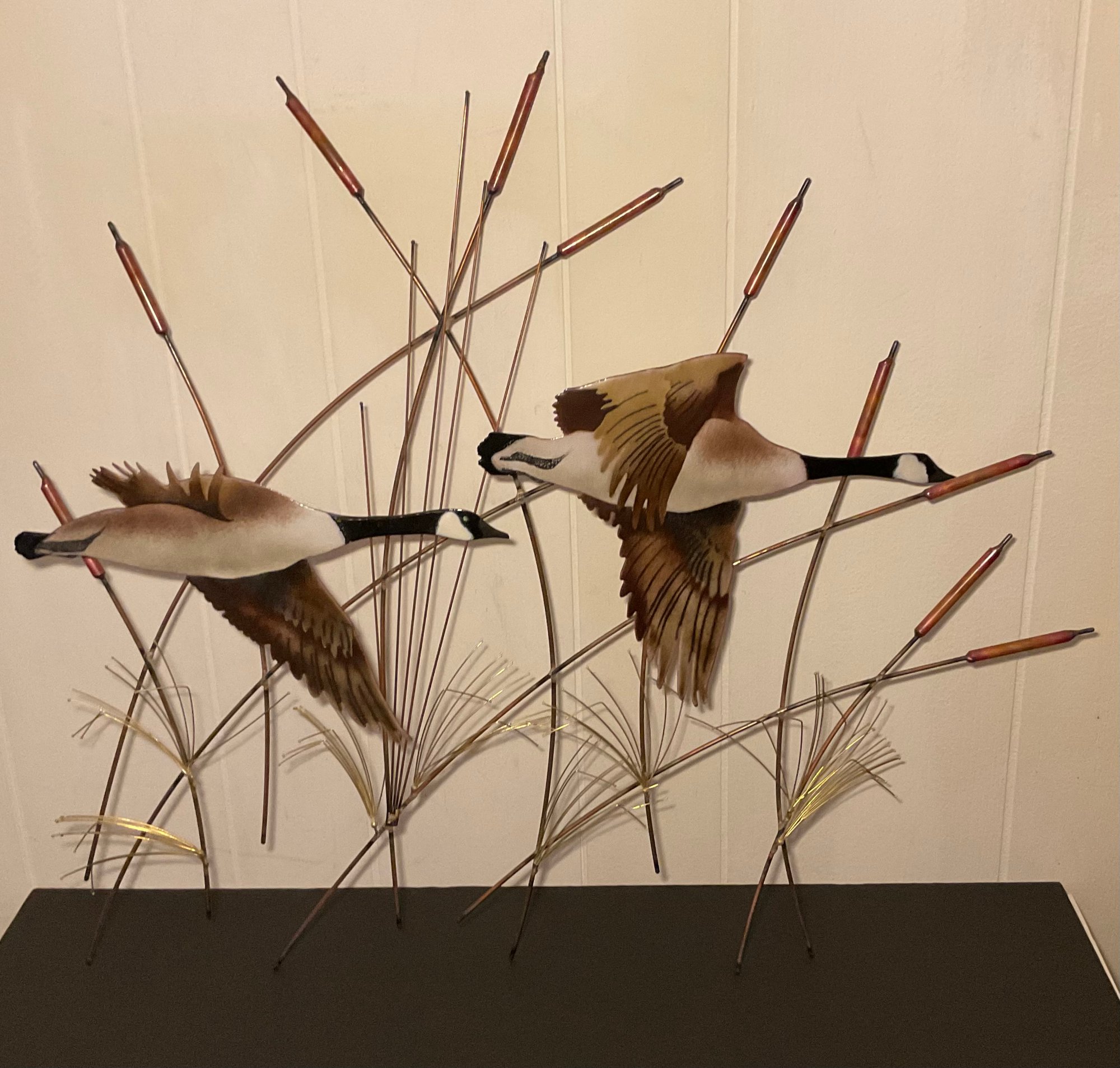 MCM Birds in Flight, Cattails, Metal Wall Sculpture.