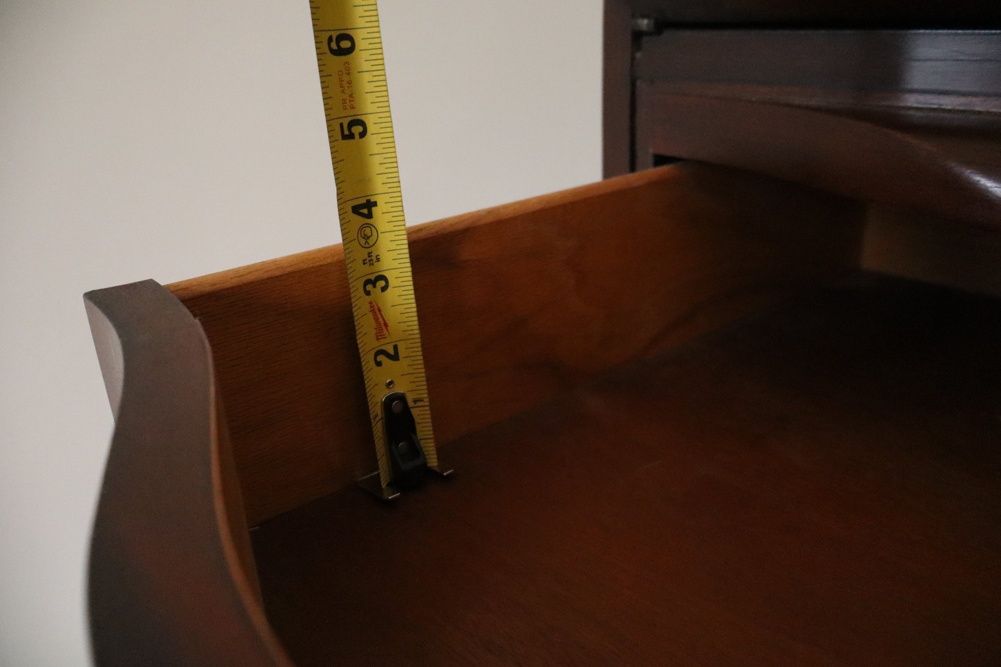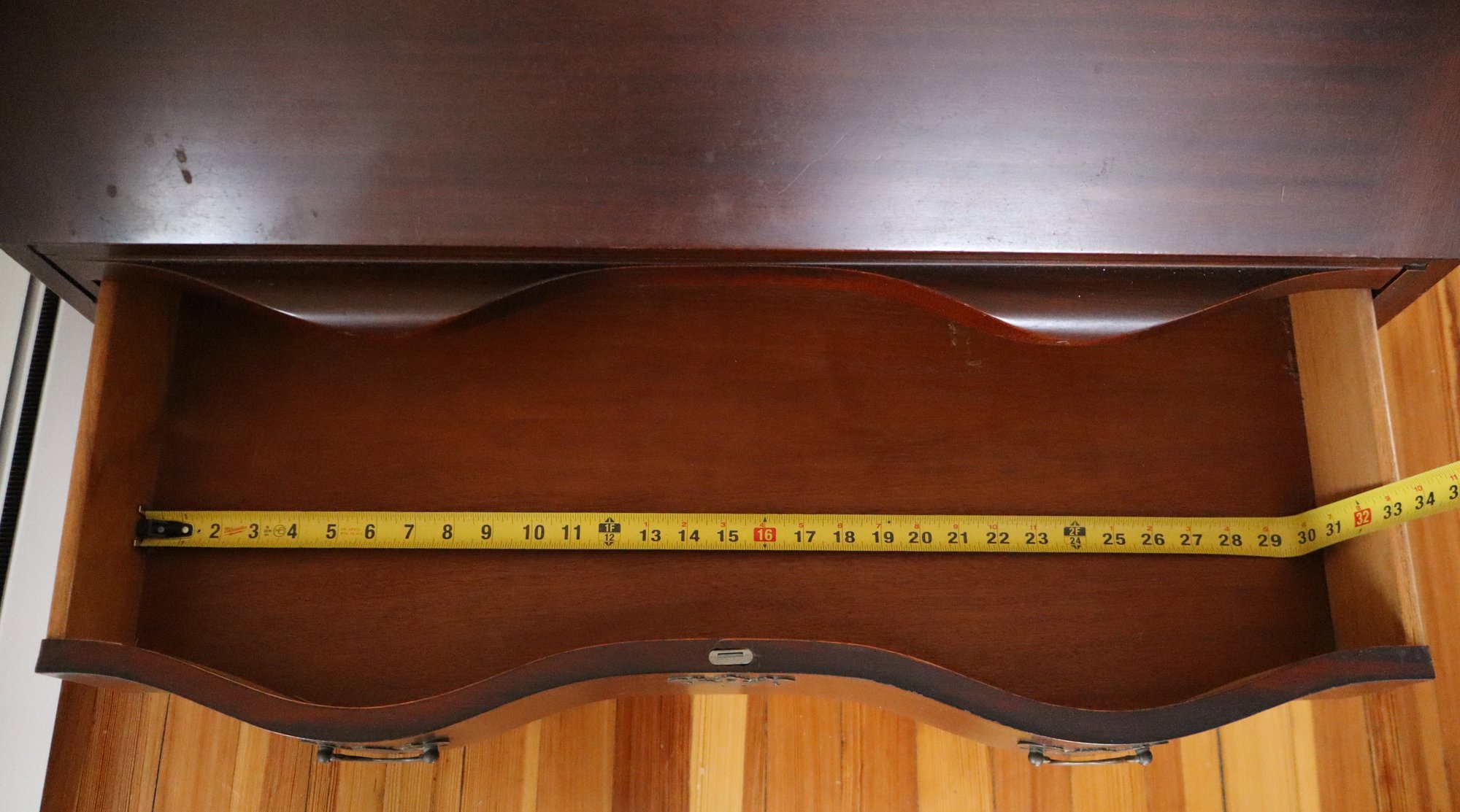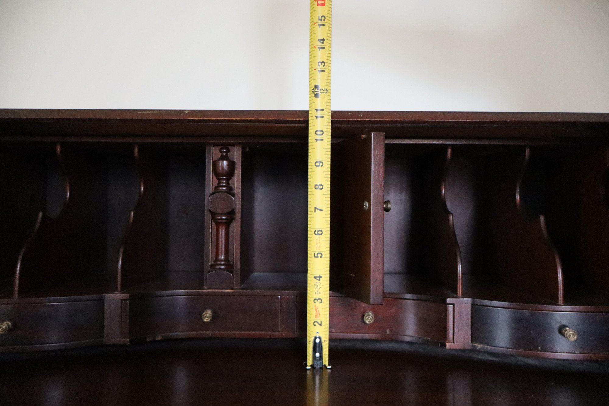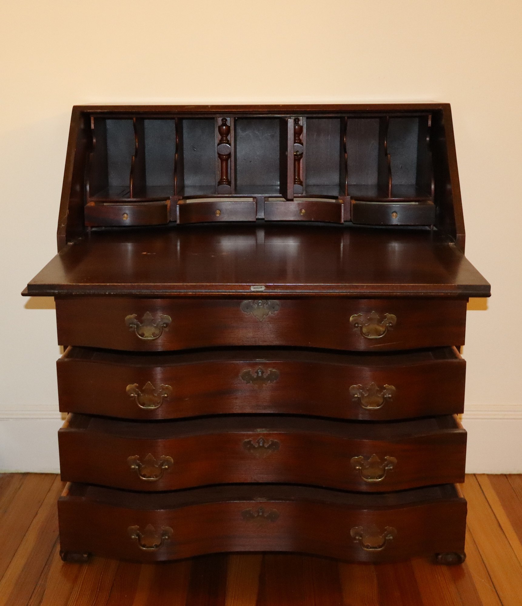 A bay of 4 serpentine drawers below