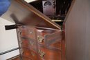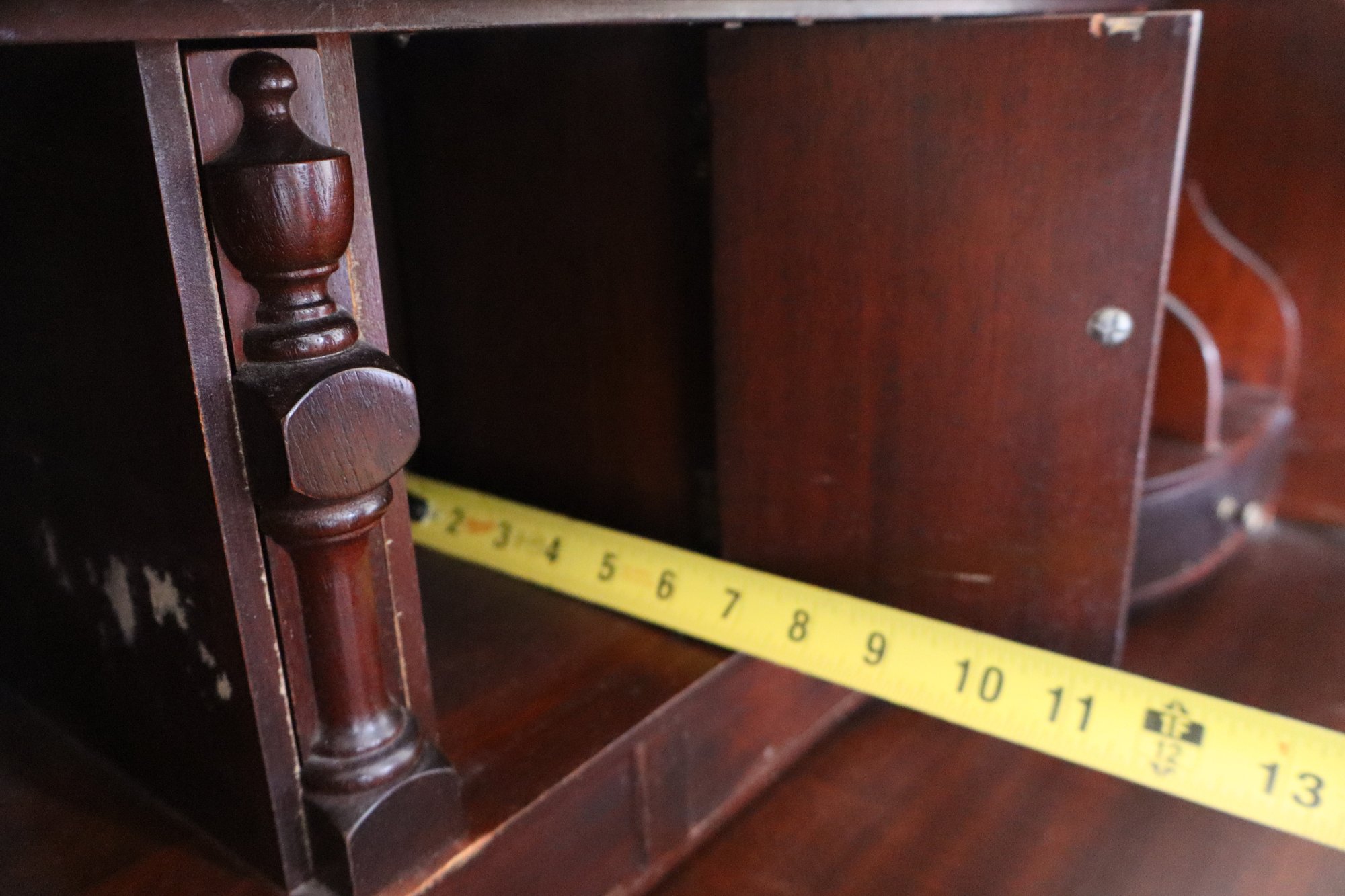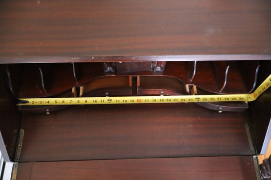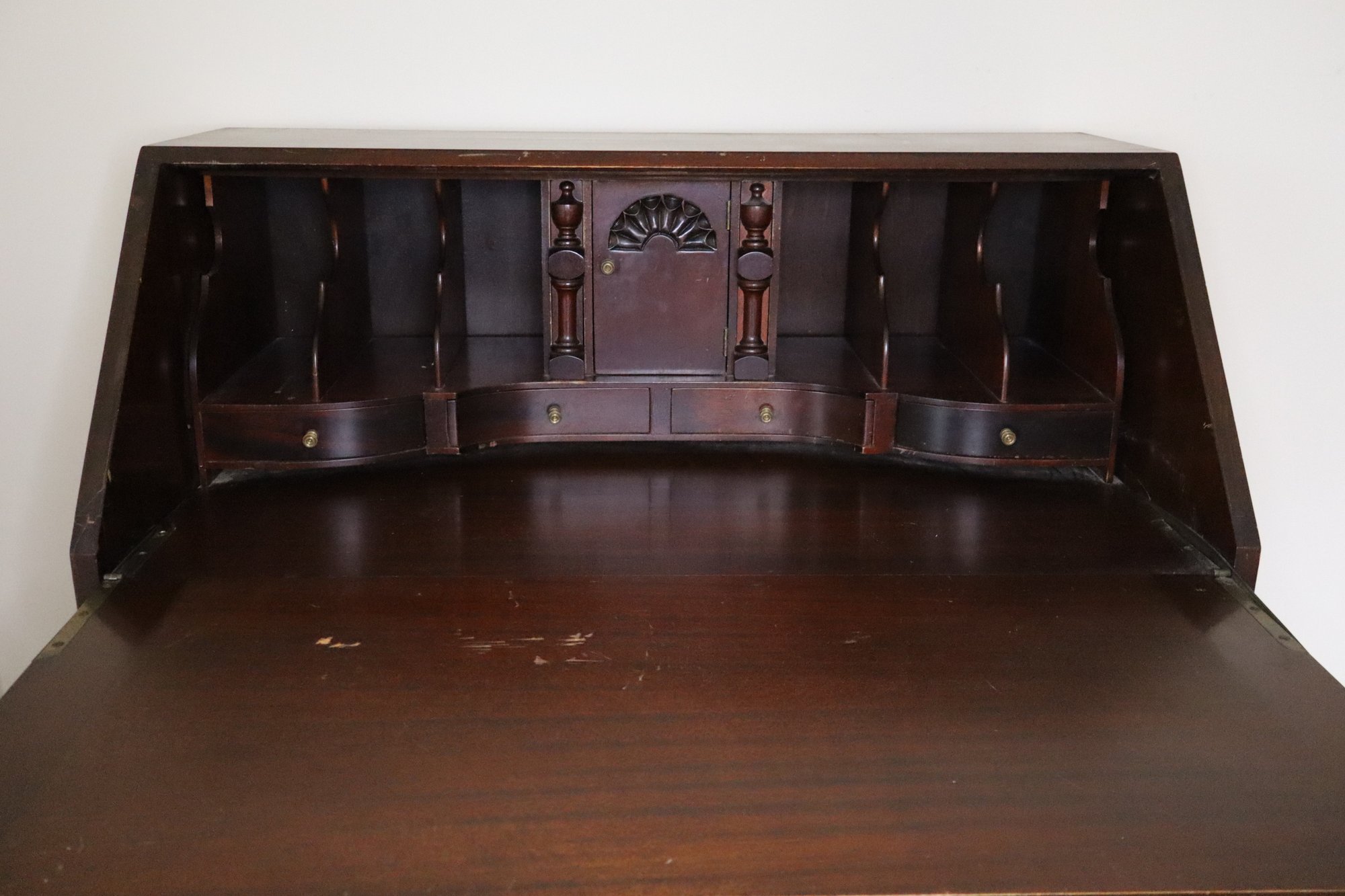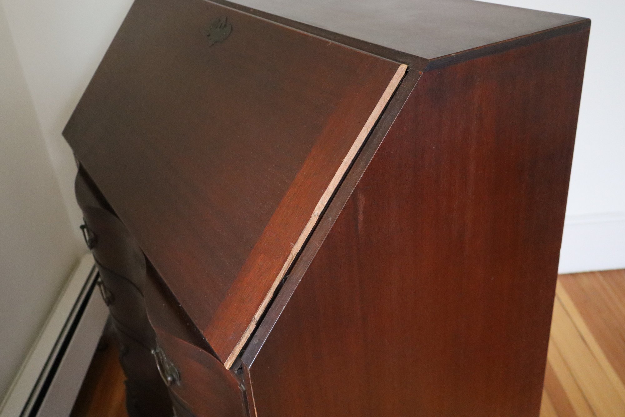 Notes: Overall good condition with expected signs of use. Long chip along the side of lid, & back panel is slightly bowed out as shown in photos