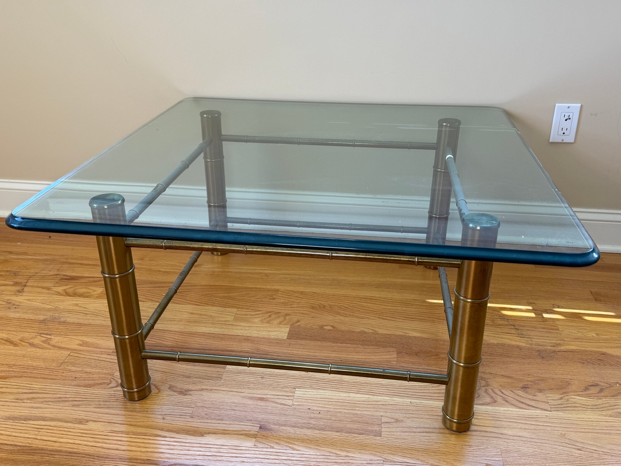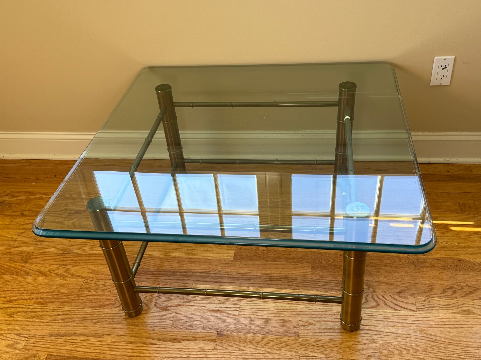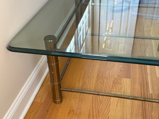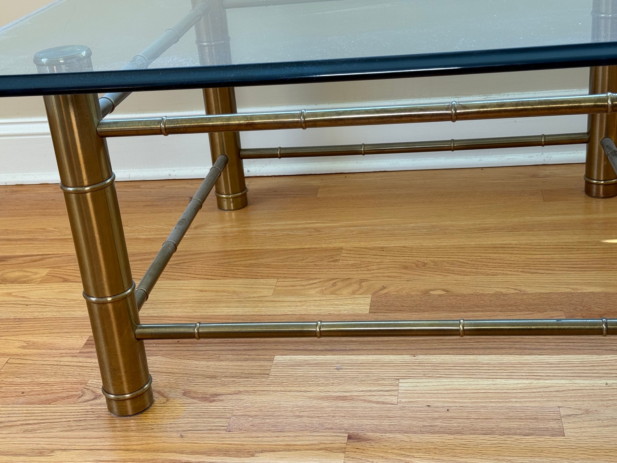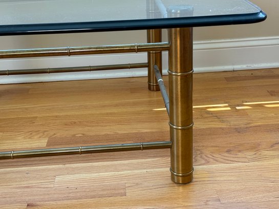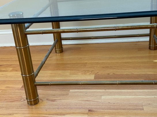MCM Mastercraft Style Faux Bamboo Brass Base Coffee table with glass top