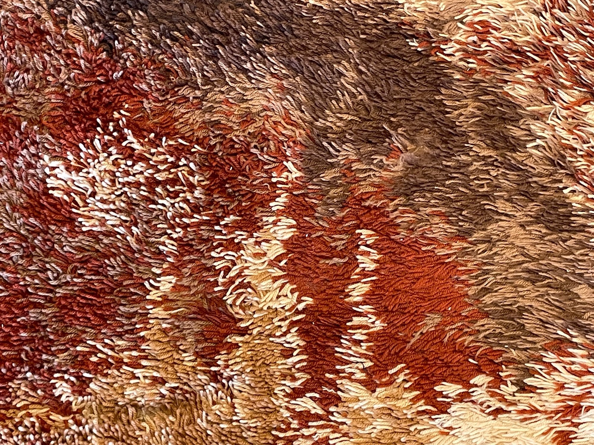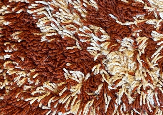 Original period rug in MCM colors with intact label. Could use a cleaning.