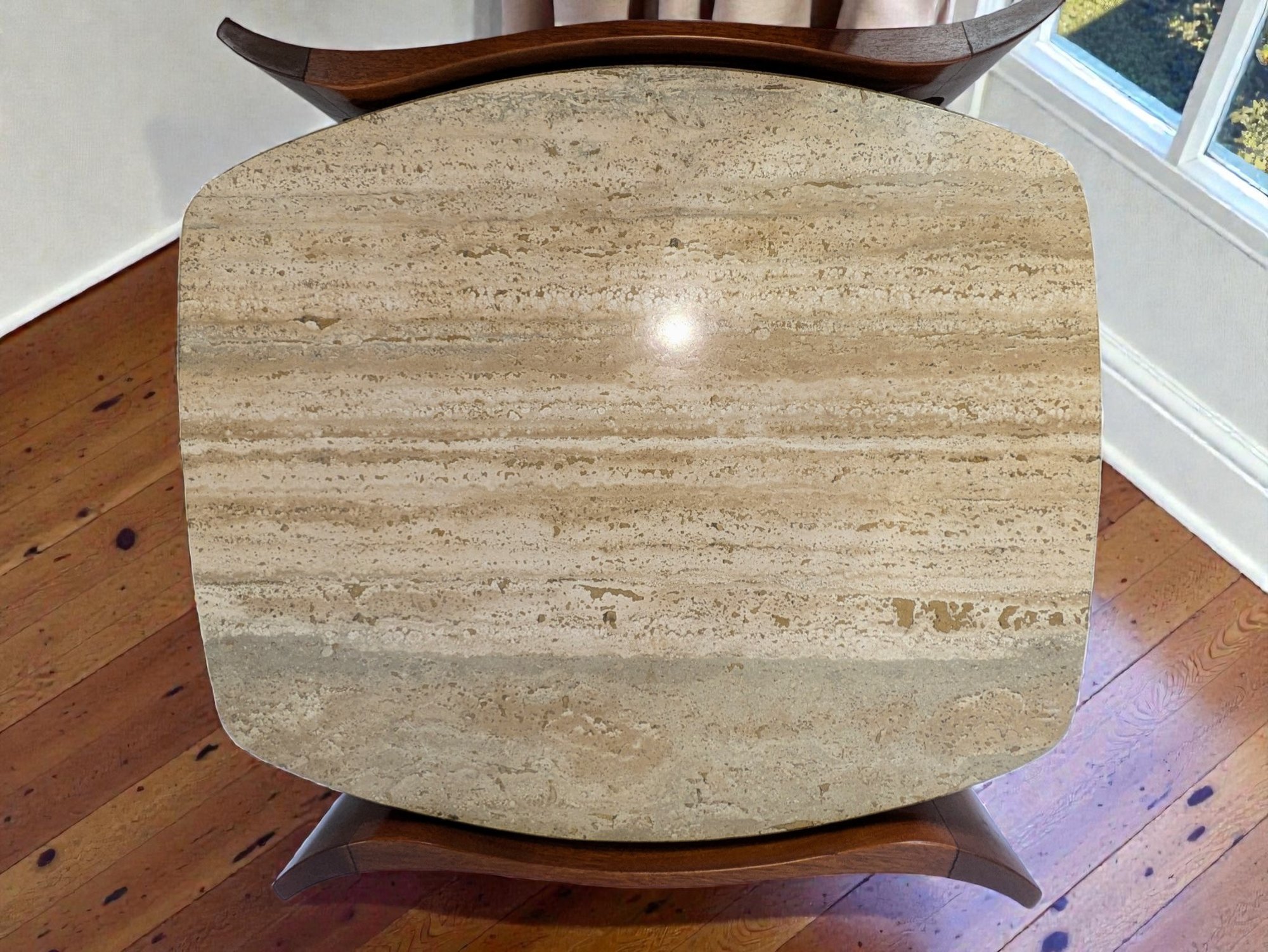 MCM Sculpted Walnut & Italian Travertine Side Table - 2 Of 2
