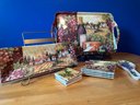 Cheese plate; 4 individual serving plates; handled serving tray; spoon rest & 4 coasters (tile)