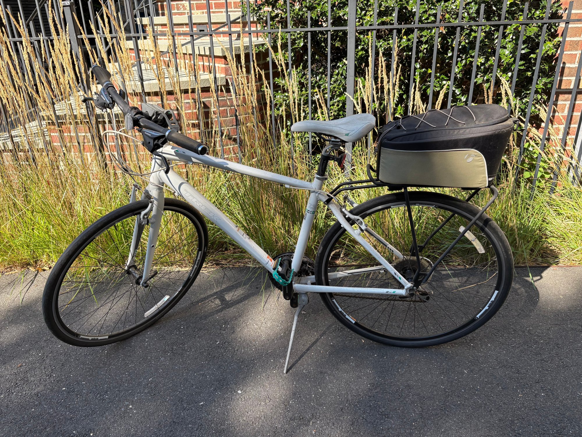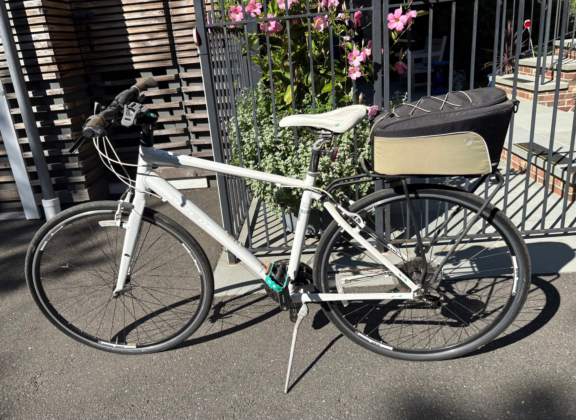 Men's TREK 7.3 FX Bike with attached zippered storage in back.