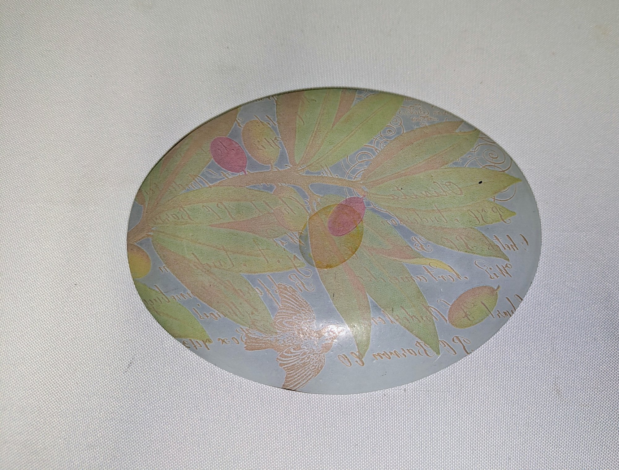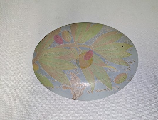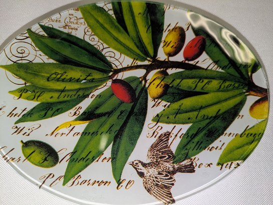 Michel Design Works "Olive Grove" design glass soap dish/trinket tray. Excellent Condition. Please see all photos as part of the description and condition. 4" x 6"