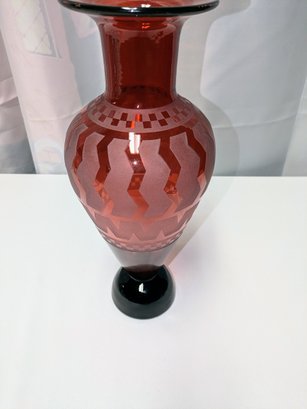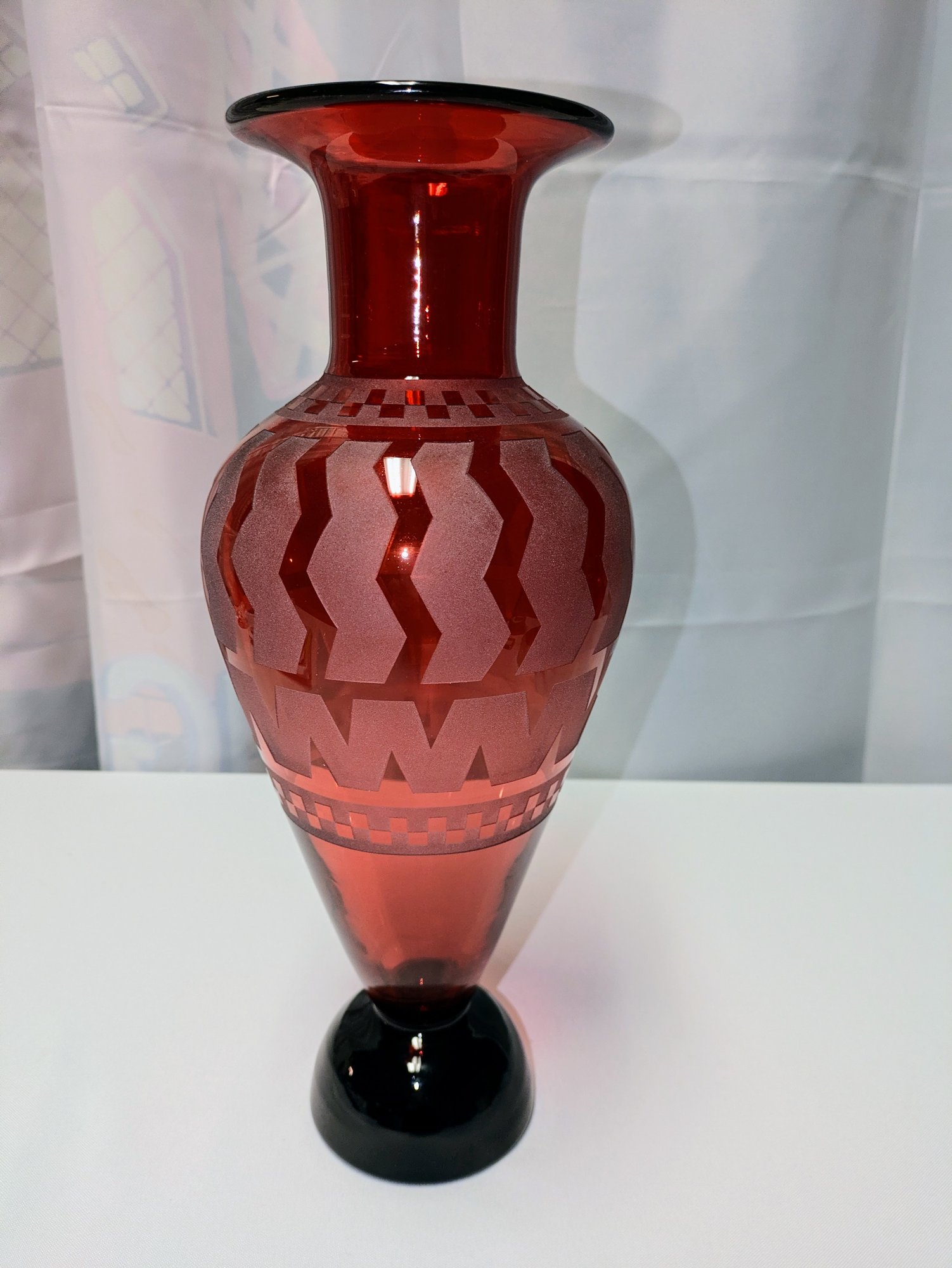 Mid 20th Century Steven Correia Signed, Dated,1988 & #20/200 Red Cameo Art Glass Vase. Stunning Red & Frosted Glass Cameo Glass Art Vase. Excellent/Vintage Condition. Please see all photos as part of the description and condition. 15"H.