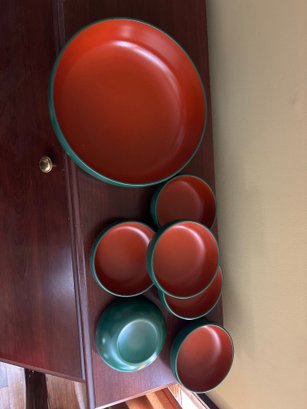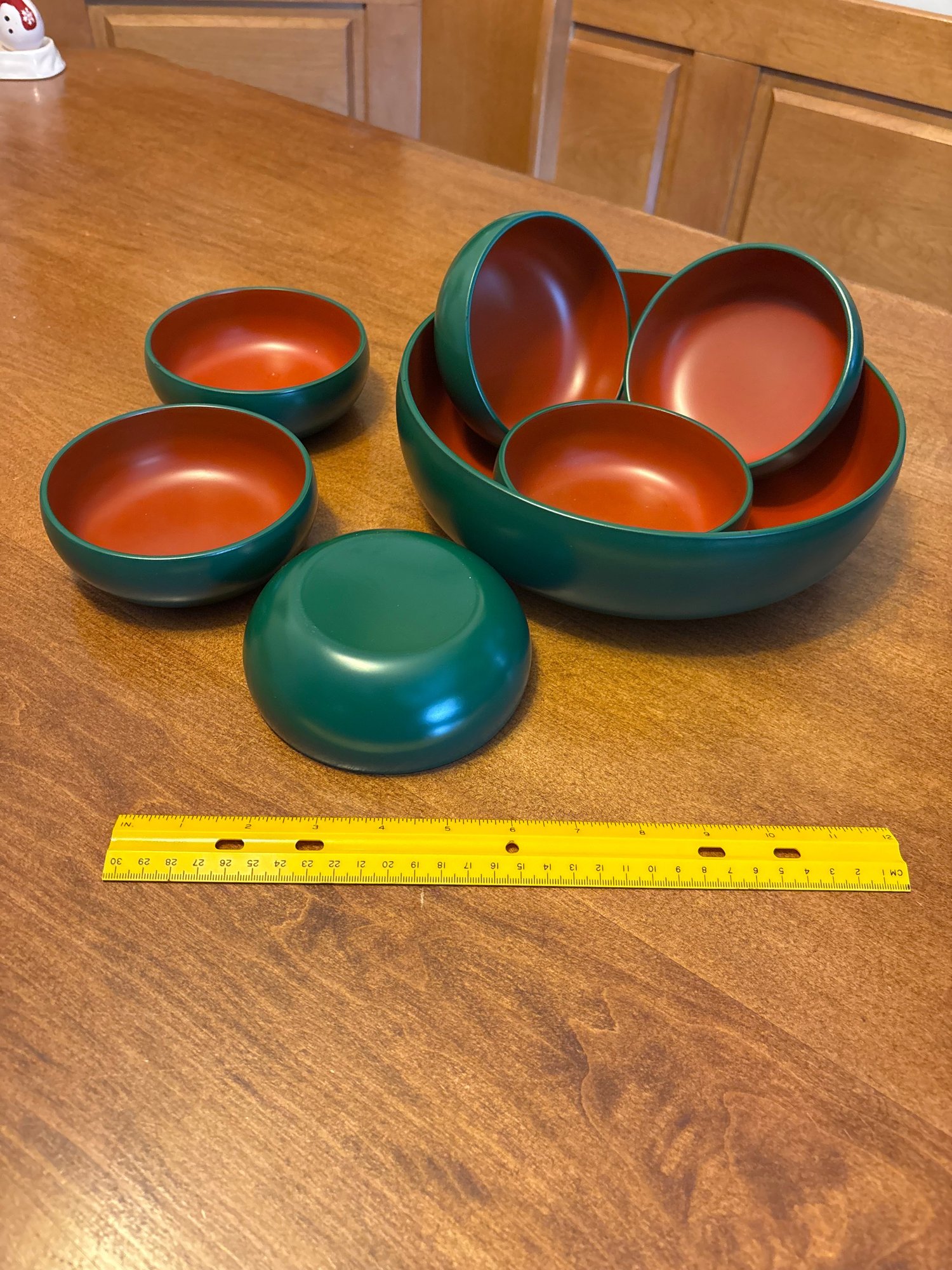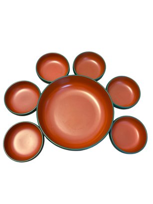 7-piece Japanese Lacquerware Salad or Hostess Set Mid-Century Modern era