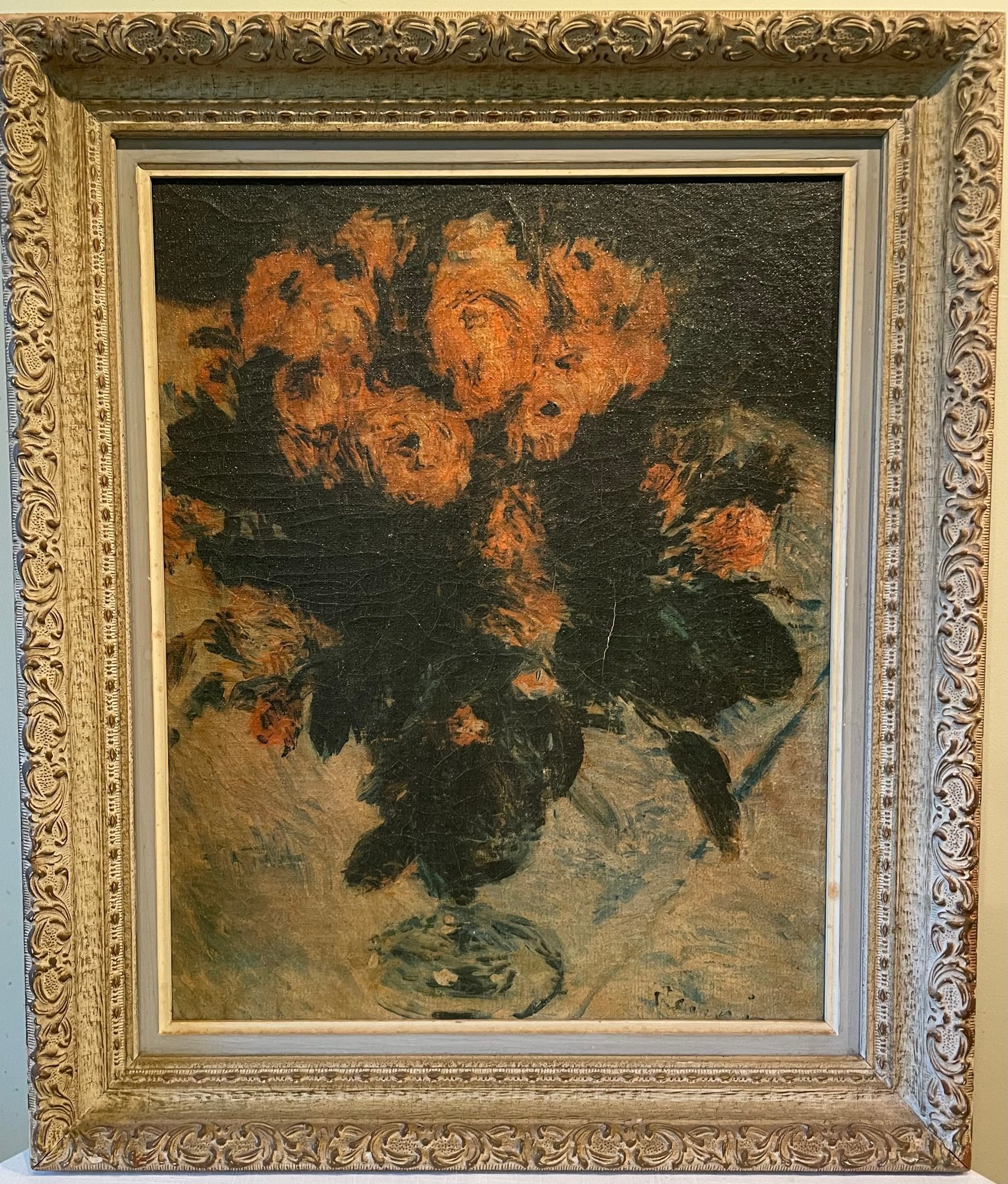 Nice mid century frame with a print by Picasso. A typical 1950's piece of decor. The frame is in good condition and the print has light crazing on the image.