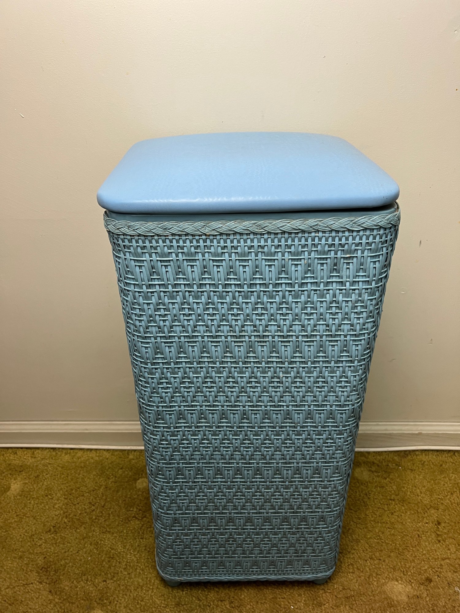 Classic mid century vinyl wicker type hamper made by Harvey Manufacturing Co. of Cary, Illinois.
