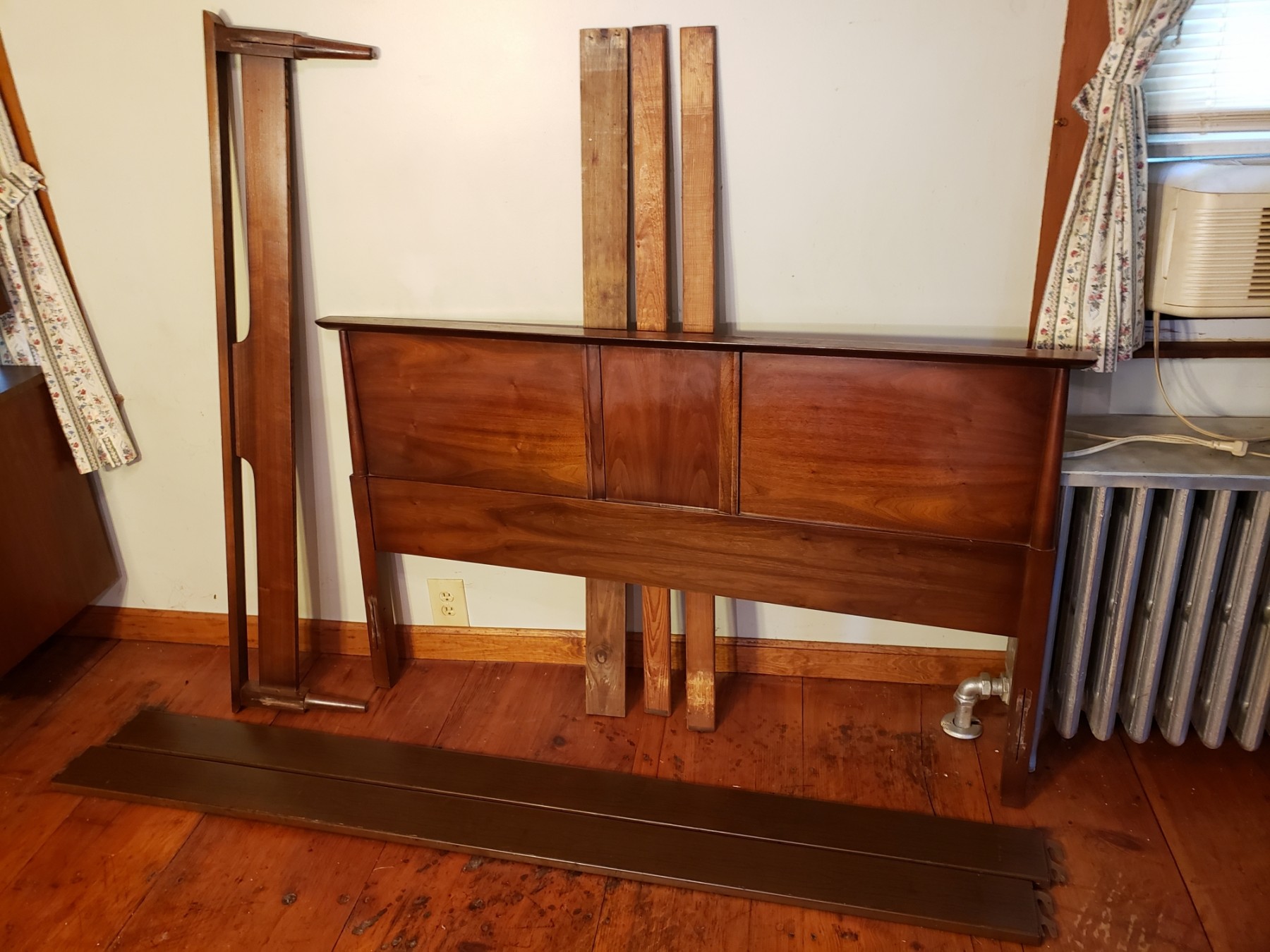 Includes - Footboard, Headboard, original wood grained metal rails and wooden Bed slats.