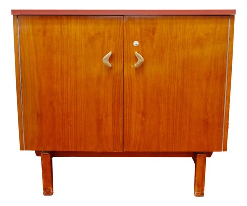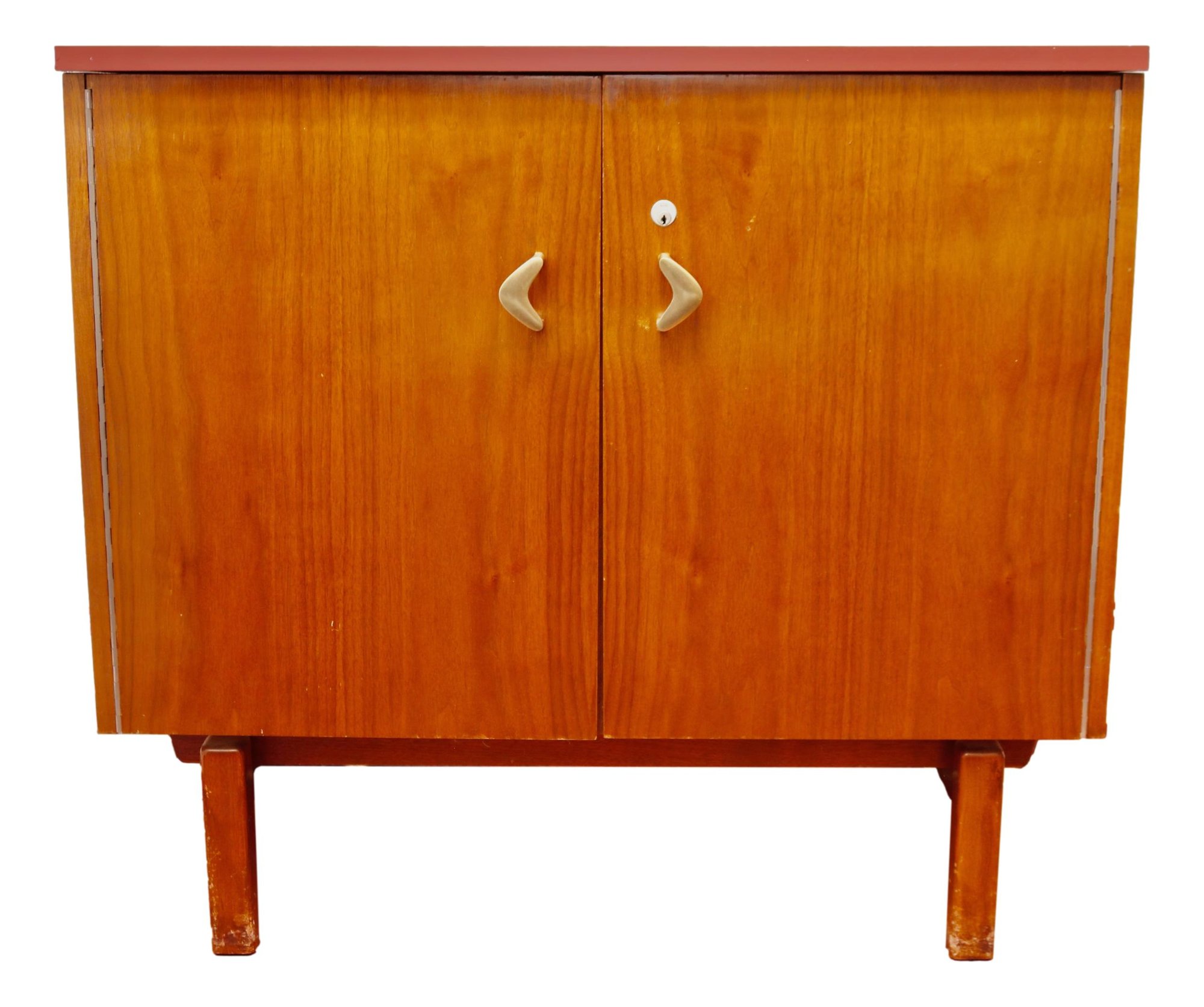 The embodiment of Mid Century Modern sophistication: the Swedish Storage Double Door Cabinet. With its clean lines and iconic design, this cabinet seamlessly blends style and functionality. Crafted possibly from teak and boasting a rich pecan finish, this cabinet exudes warmth and elegance. The top is thoughtfully hinged, creating a space that opens up to your imagination – a perfect platform for display or storage. The doors showcase a retro charm with boomerang-shaped mat silvertone knobs, paying homage to the era's unique aesthetics. Inside, a white interior with drawers enhances the visual appeal while ensuring your belongings are showcased in the best light. Standing on block post legs, this cabinet embraces the Mid Century Modern ethos of combining form and stability. Its design is not just a nod to the past; it's a statement of timeless style that effortlessly complements any space. Elevate your decor with the Mid Century Modern Style Swedish Storage Double Door Cabinet. Experience the allure of an era where design embraced both function and flair. Transform your space with a piece that resonates with history while adding a touch of contemporary elegance