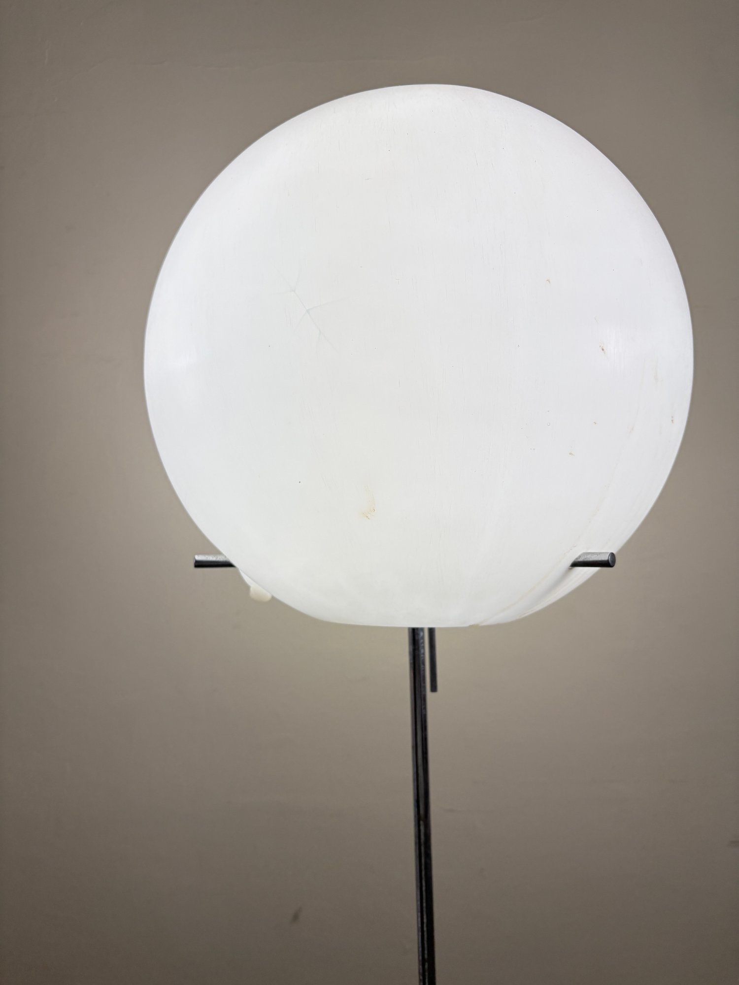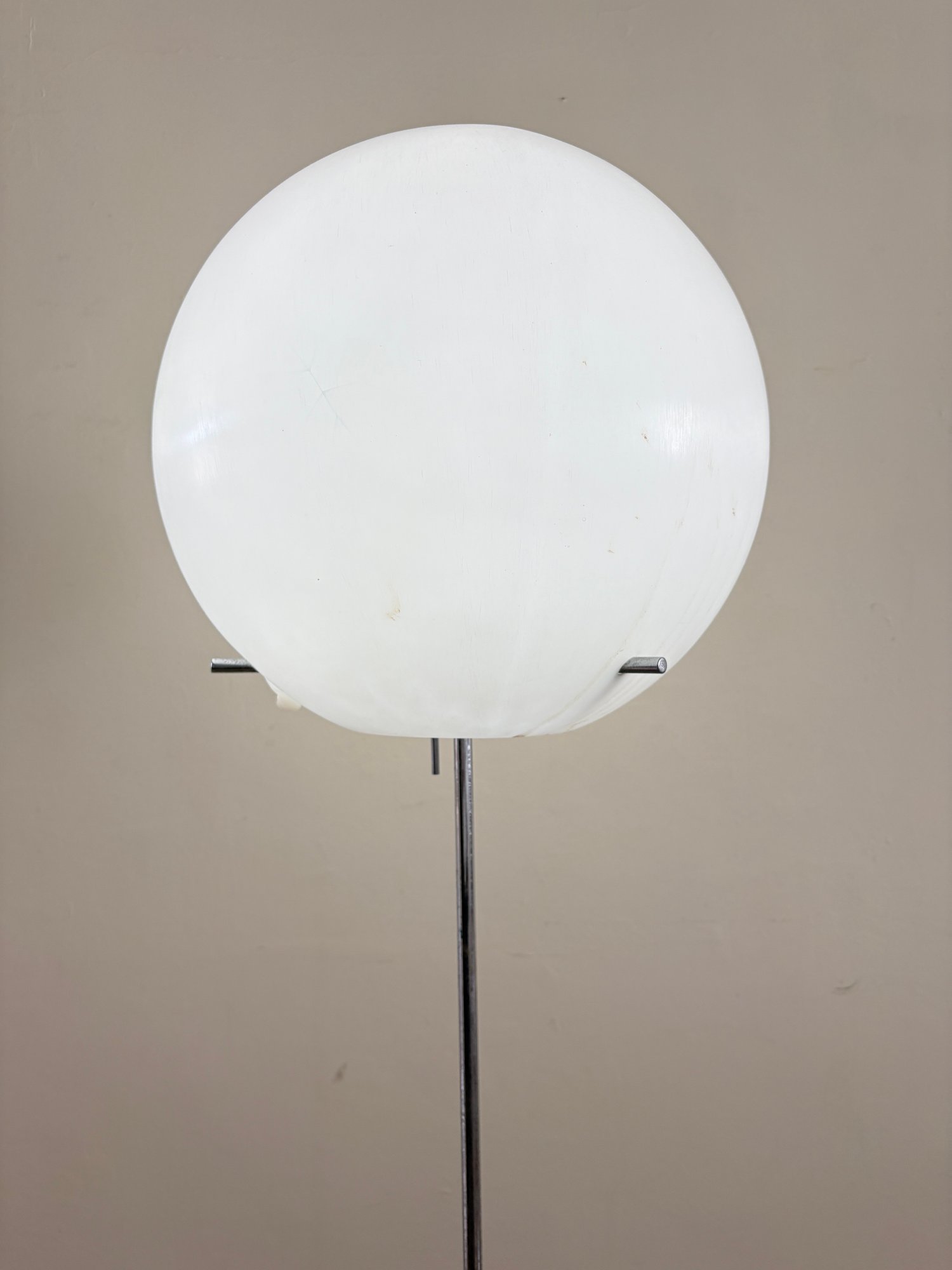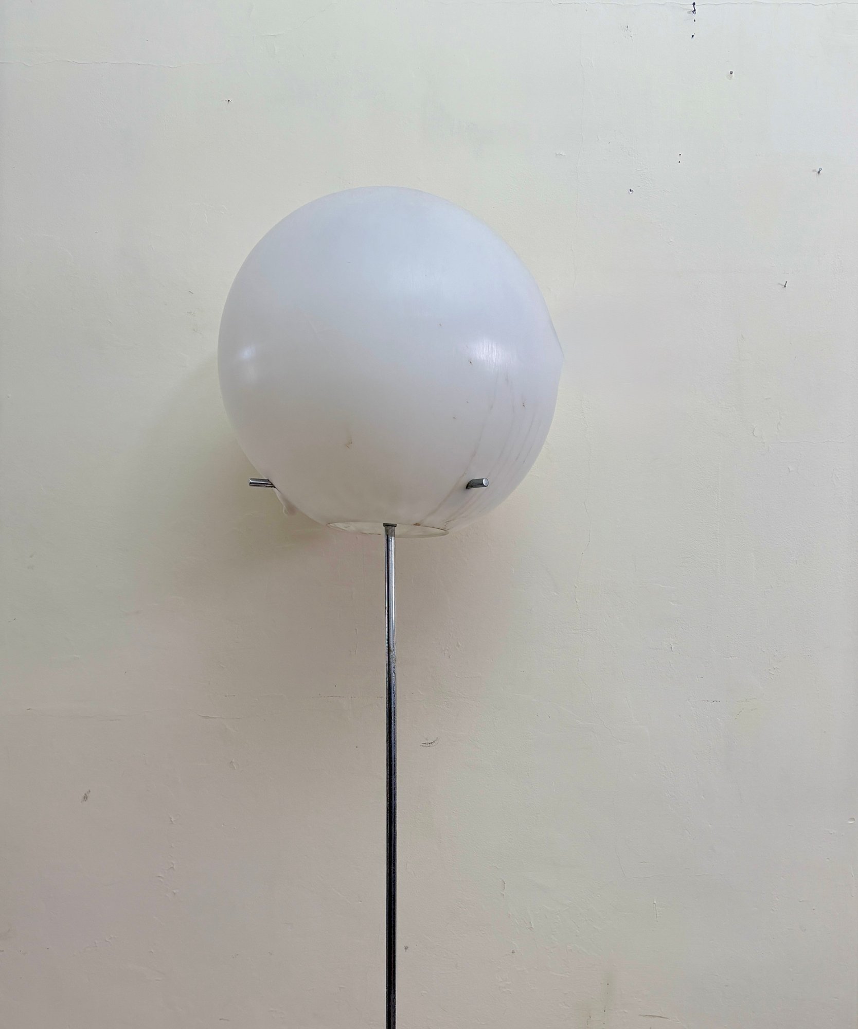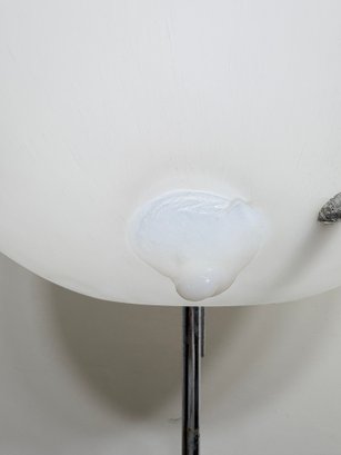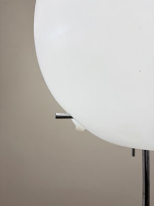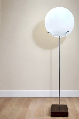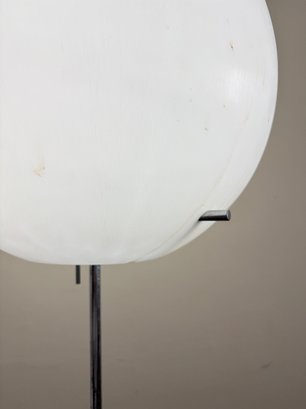 Amazing, rare mid century Paul Mayen Style large lollipop floor lamp. You can angle the ball different directions and angles. Walnut square base and chrome stem. Three chrome pegs fit through the plastic ball shade.