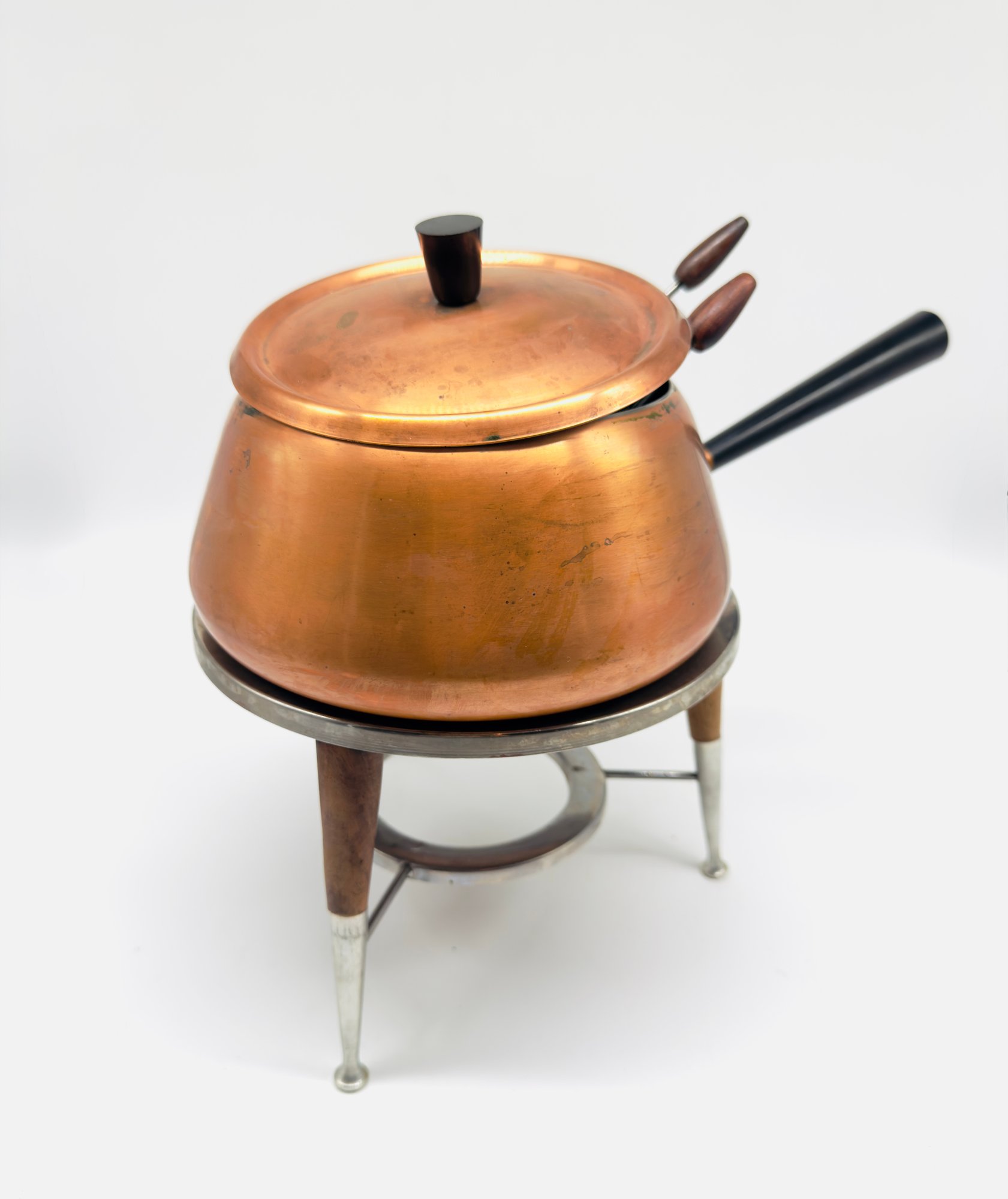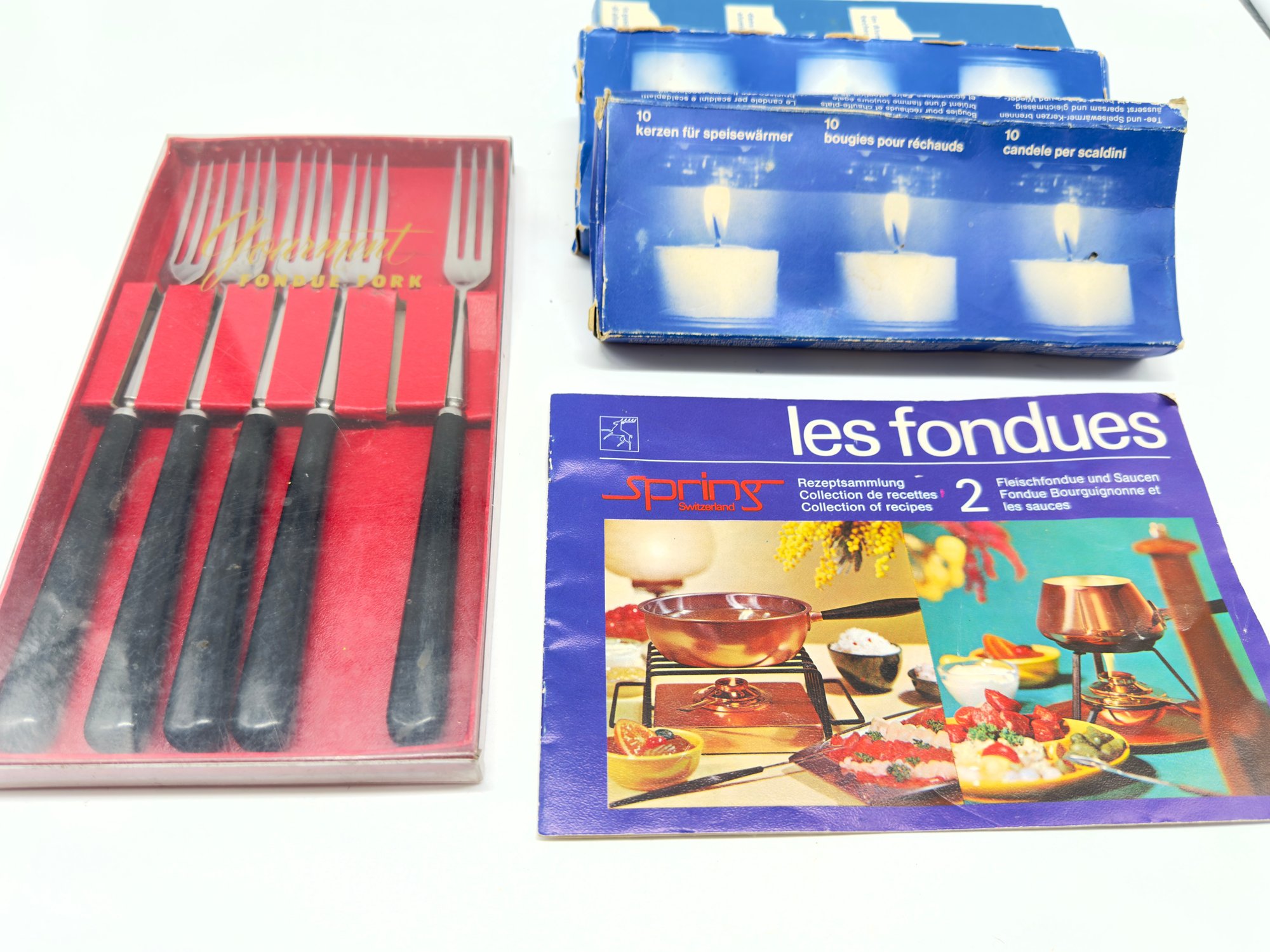 So much fun for parties :) Comes with accessories and forks and a lovely Mid Century styling. In good vintage condition.