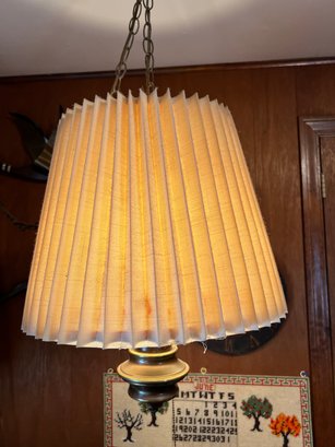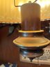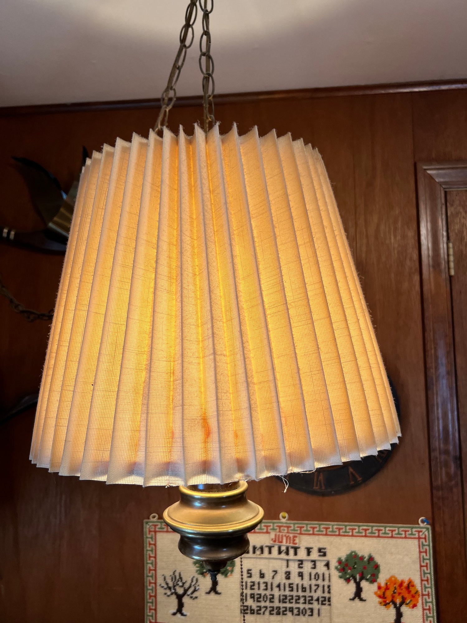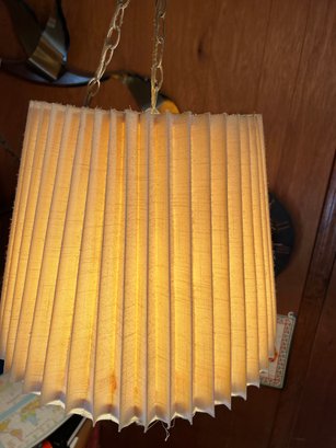 Funky genuine mid century vintage wooden bodied swag lamp with original bell form shade.