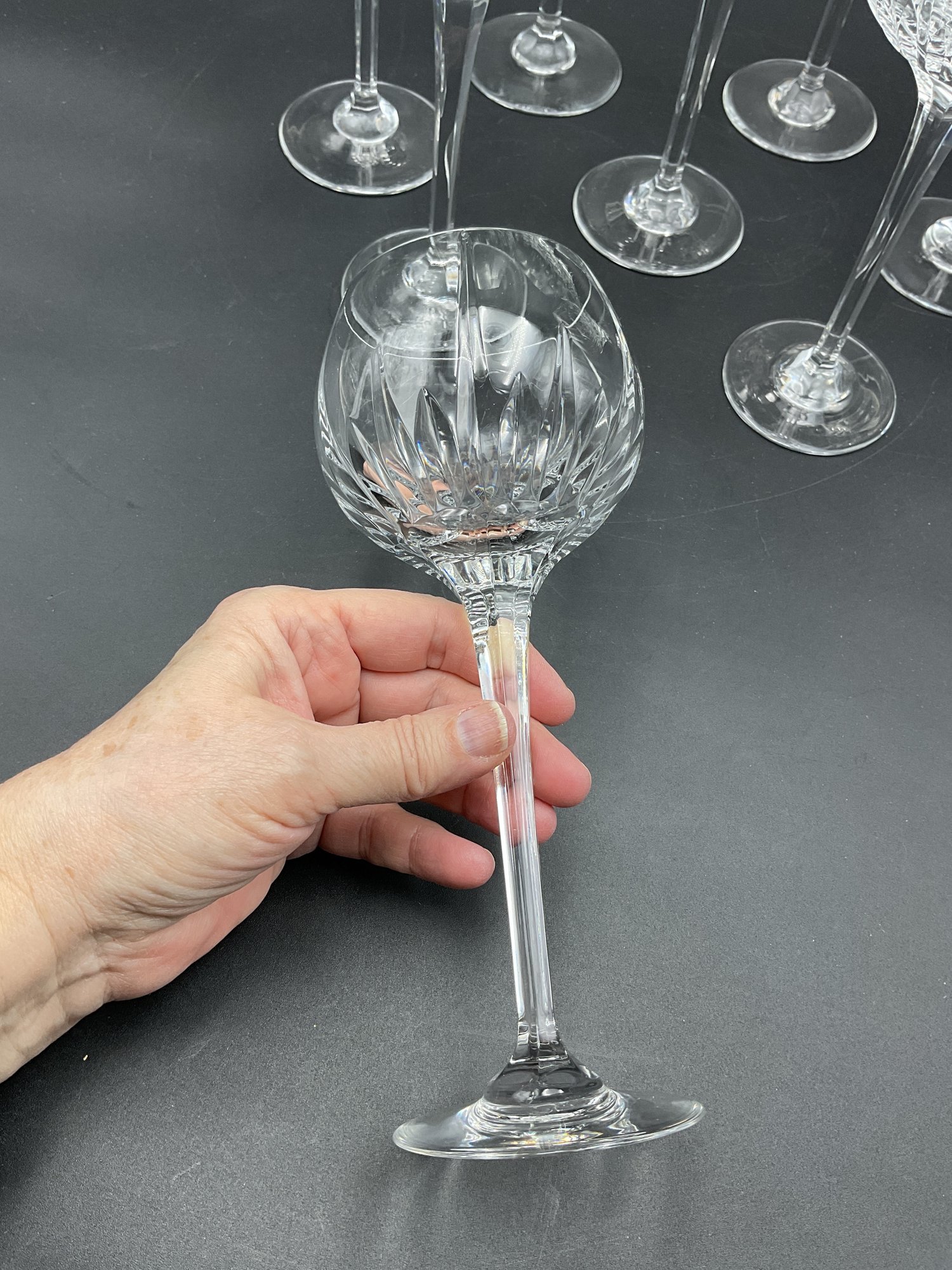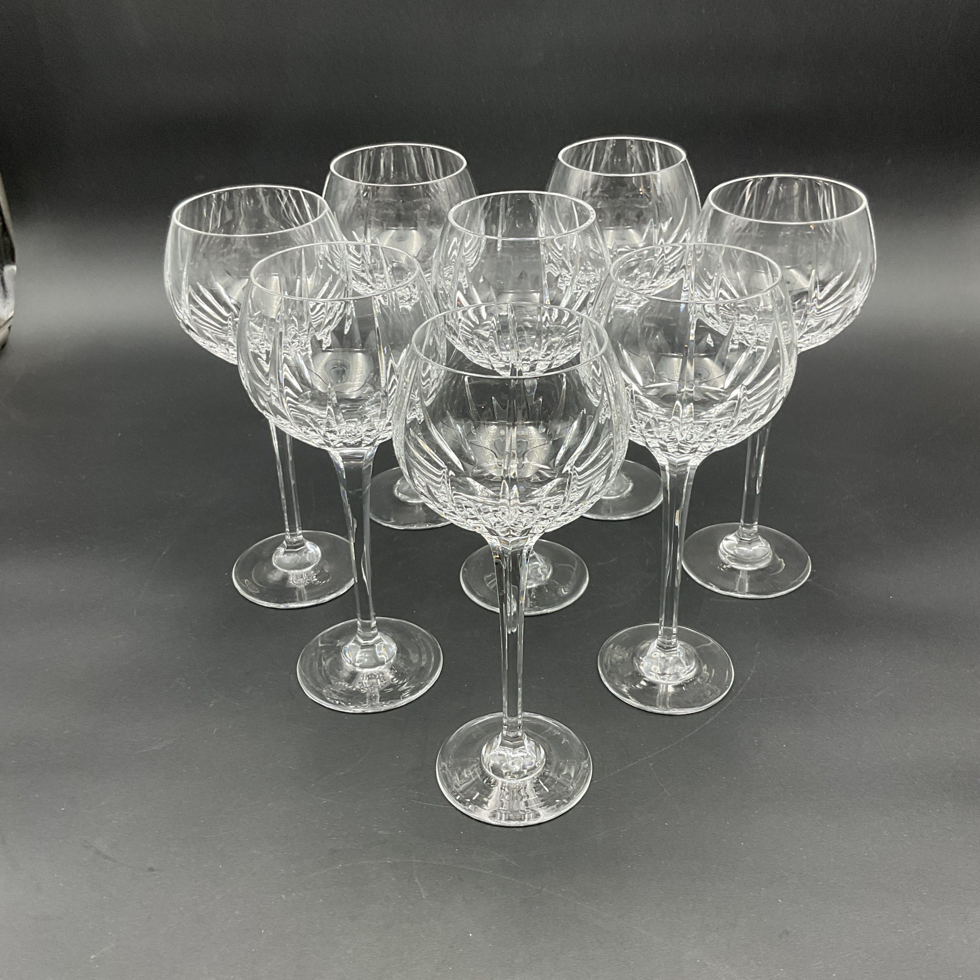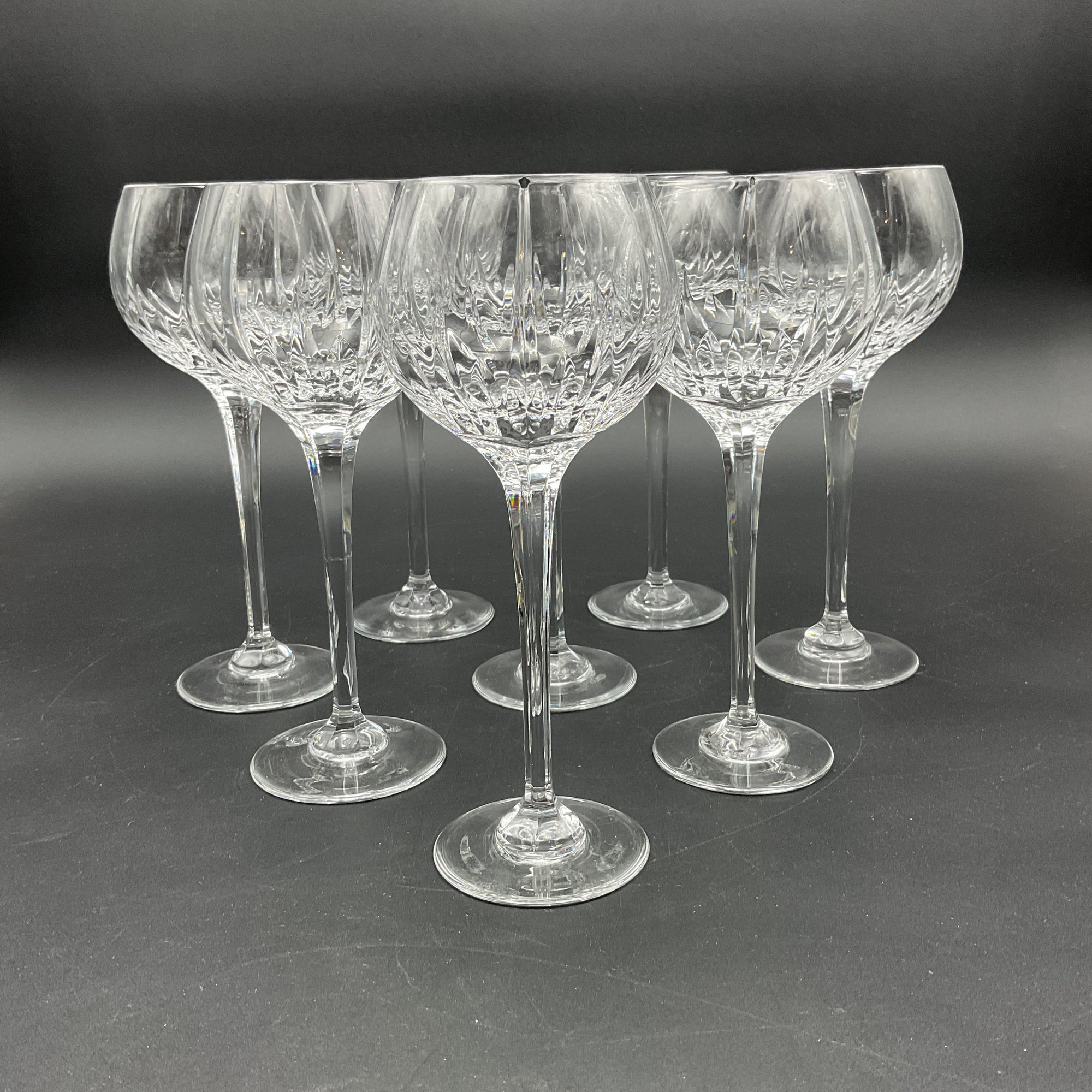 Gorgeous Mikasa crystal wine glasses in the highly desirable Arctic Lights pattern (retired). All in excellent condition. Set of 8 in the Hock Wine shape. We found these selling for $45-70 each online! Match the Mikasa Arctic Lights wine glasses sold separately in this auction.