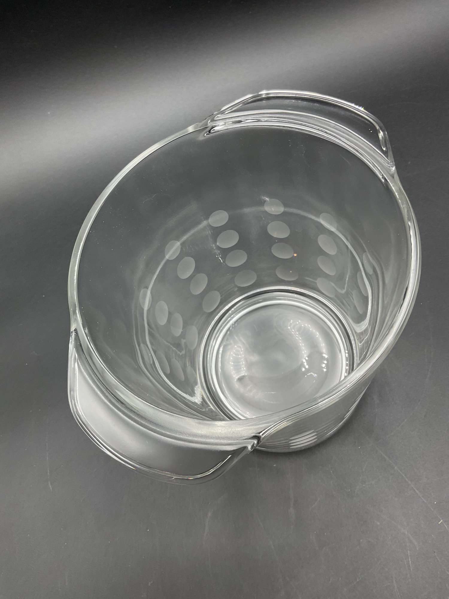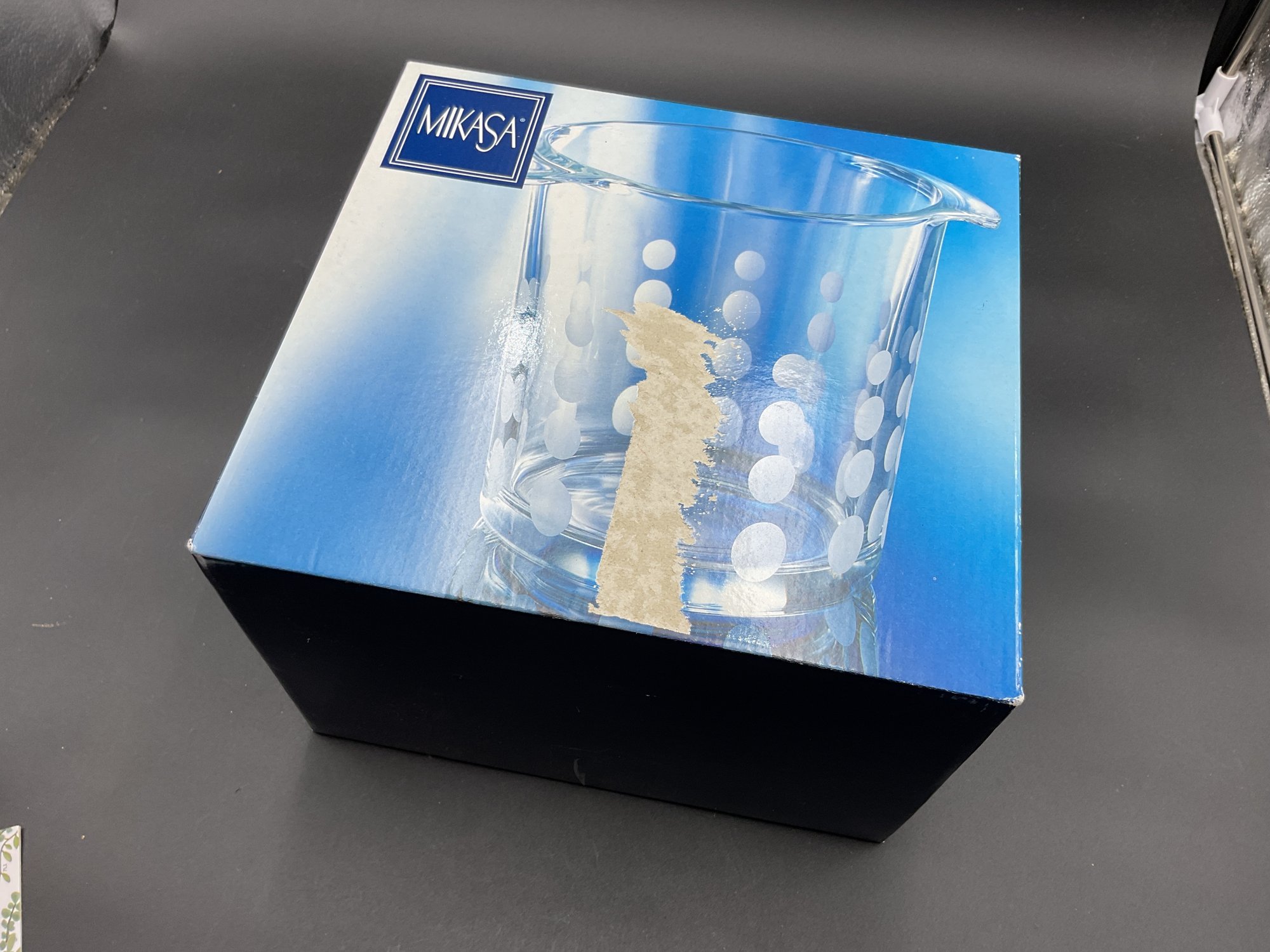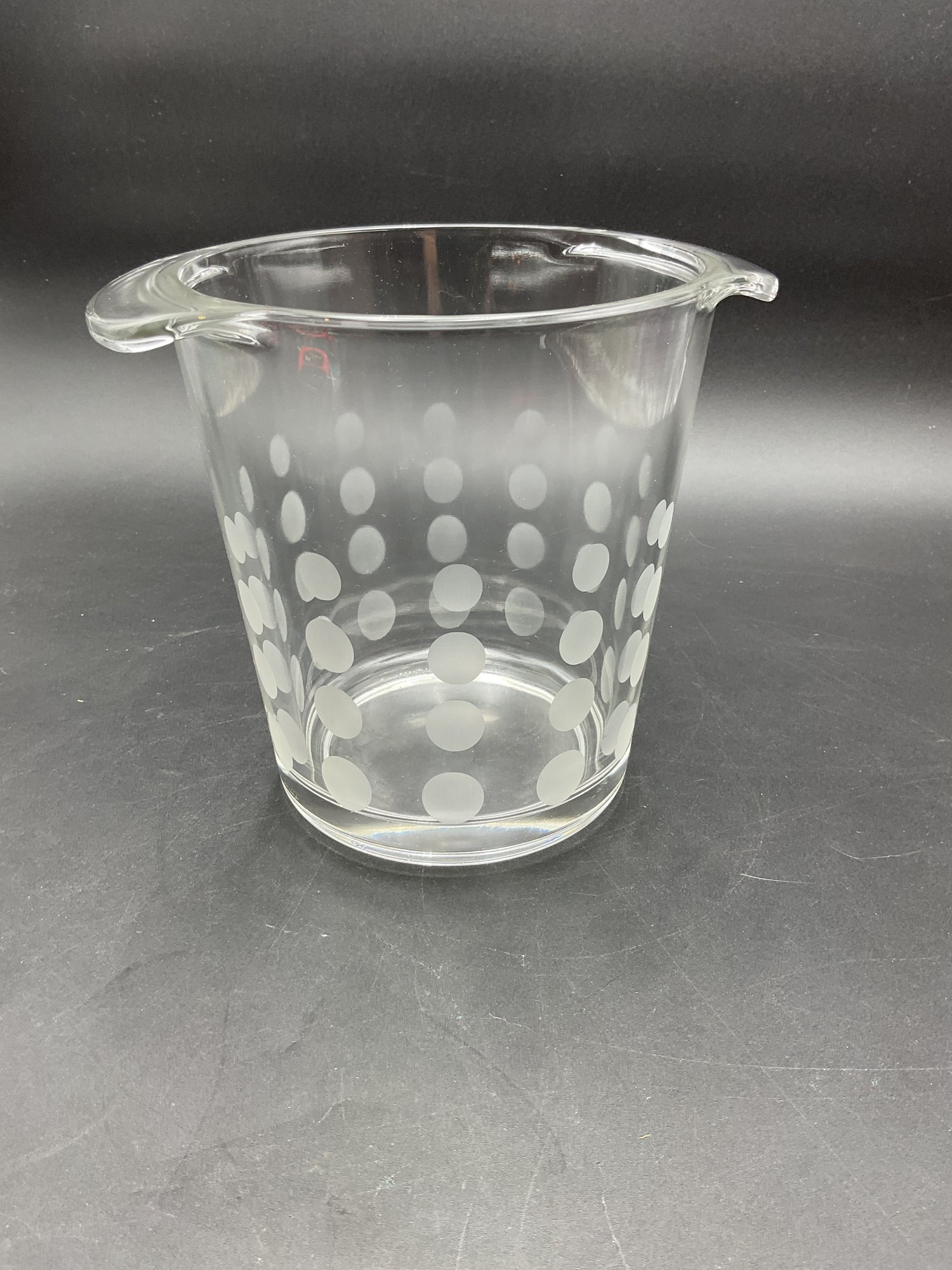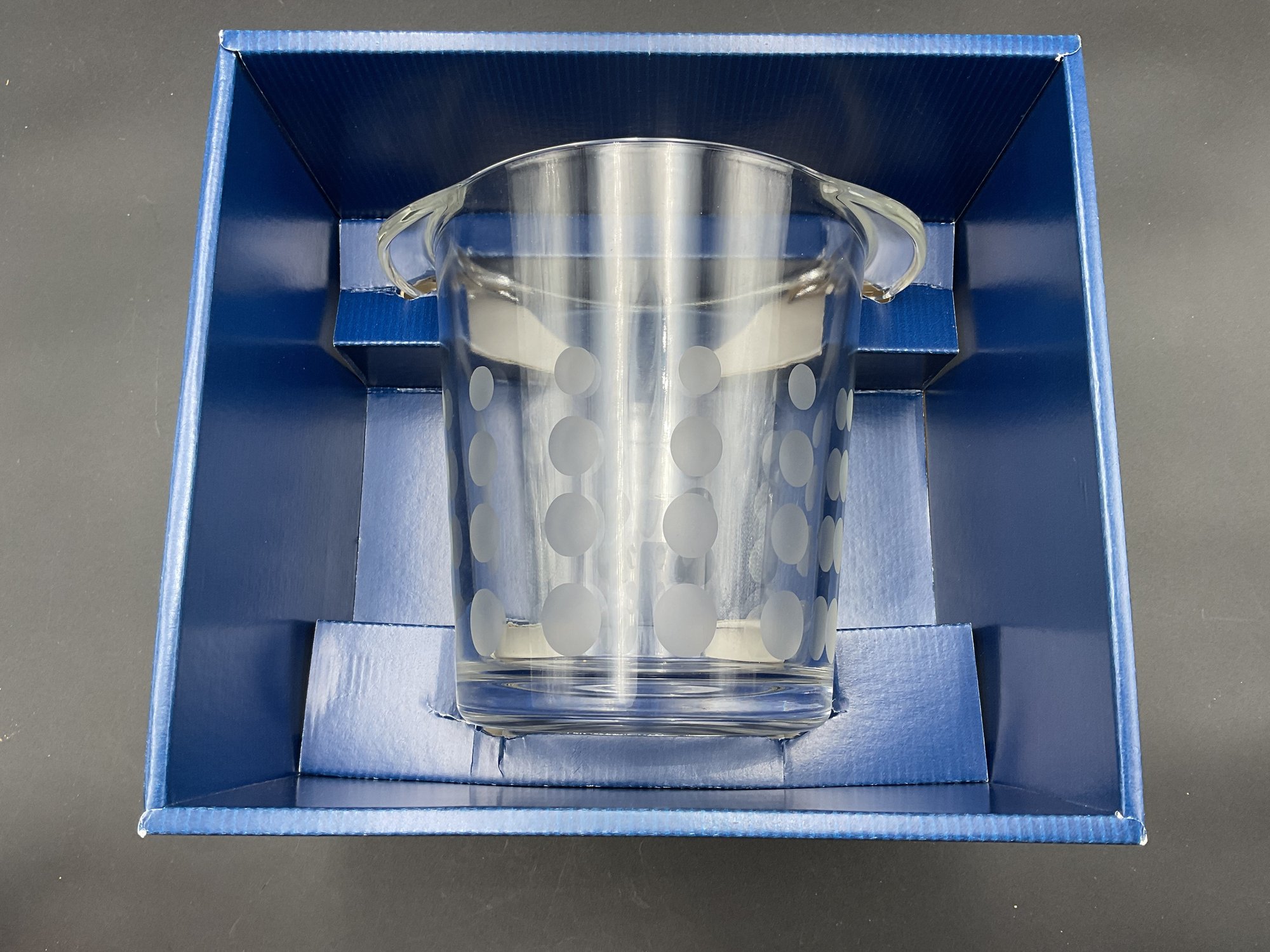 Pretty crystal ice bucket from Mikasa in the "Cheers" polka dot pattern in original box. Box has some wear but ice bucket looks perfect.