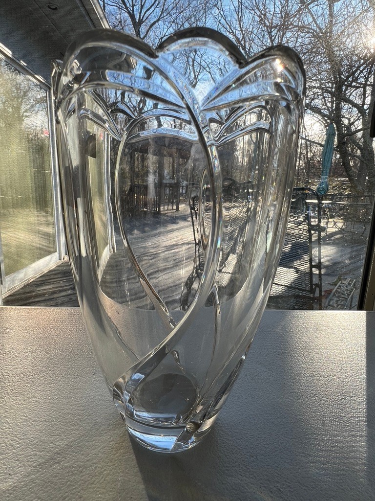 Mikasa crystal vase, flower petal, 8.5" tall
