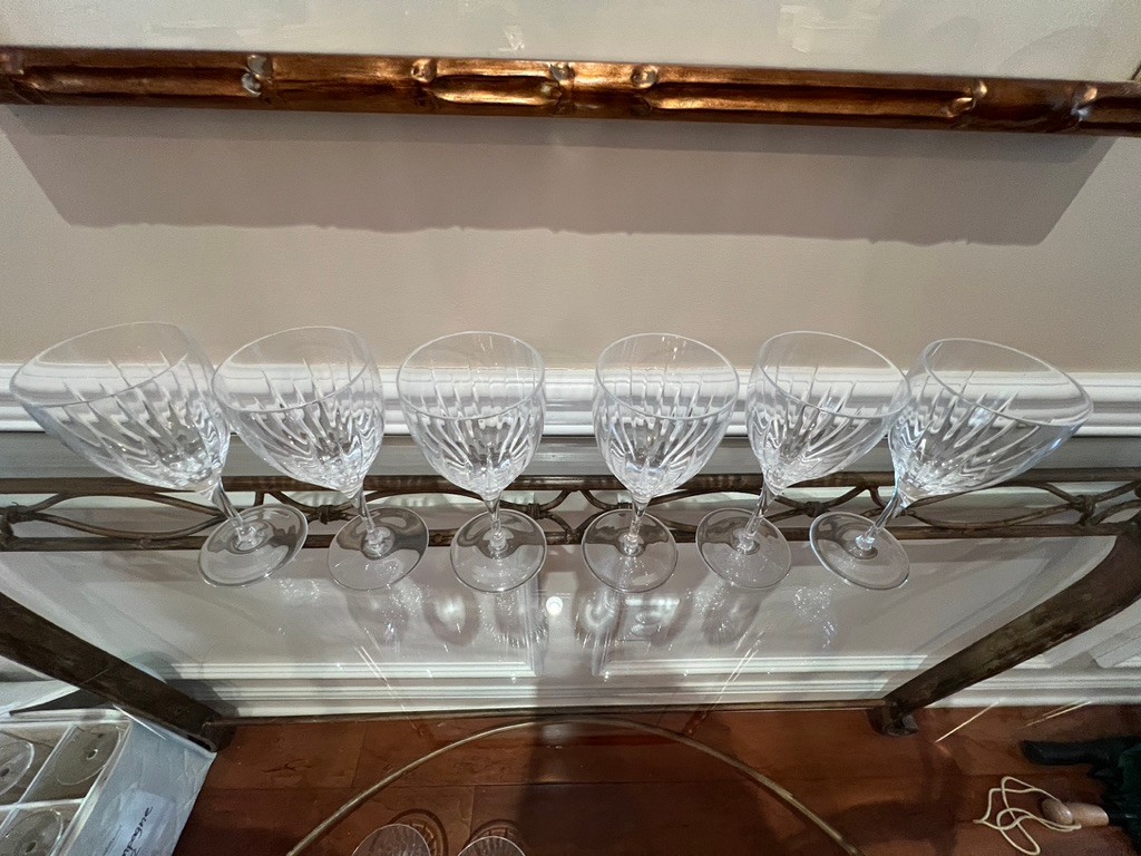 Rogaska tulip shaped hand blown full lead crystal wine stems, set of 6, Elevate your wine-drinking experience with the Rogaska SOHO Clear Crystal Wine Glasses. Crafted from premium blown glass, these generously large glasses are designed to enhance the visual and sensory appeal of your favorite wines, offering both elegance and durability. The set includes five glasses, each showcasing the meticulous craftsmanship and attention to detail that Rogaska is known for. The clear color of the glass highlights the rich colors of your wine, creating a perfect pairing for any occasion. Whether you're hosting a formal dinner or enjoying a casual evening in, these wine glasses are sure to impress.