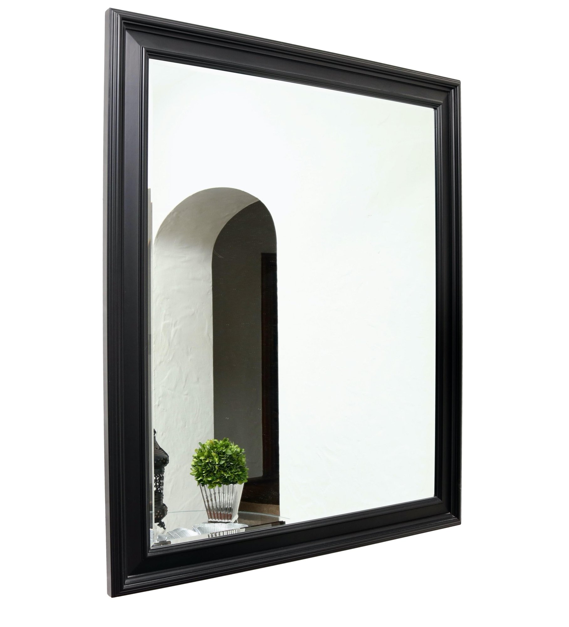 This black beveled wall mirror offers a bold, modern aesthetic with its clean lines and sharp silhouette. The sleek black frame is complemented by a subtle beveled edge, adding dimension and depth without overpowering your space. Perfect for contemporary interiors, this mirror adds both style and functionality to any room. Minimalist, chic, and oh-so-stylish!