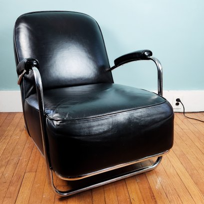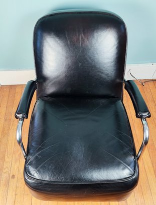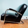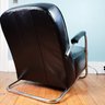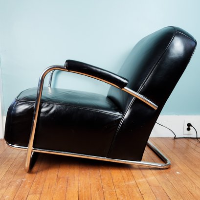 Retro bauhaus deco style black leather and chrome chair by Mitchell Gold & Bob Williams made in the USA.