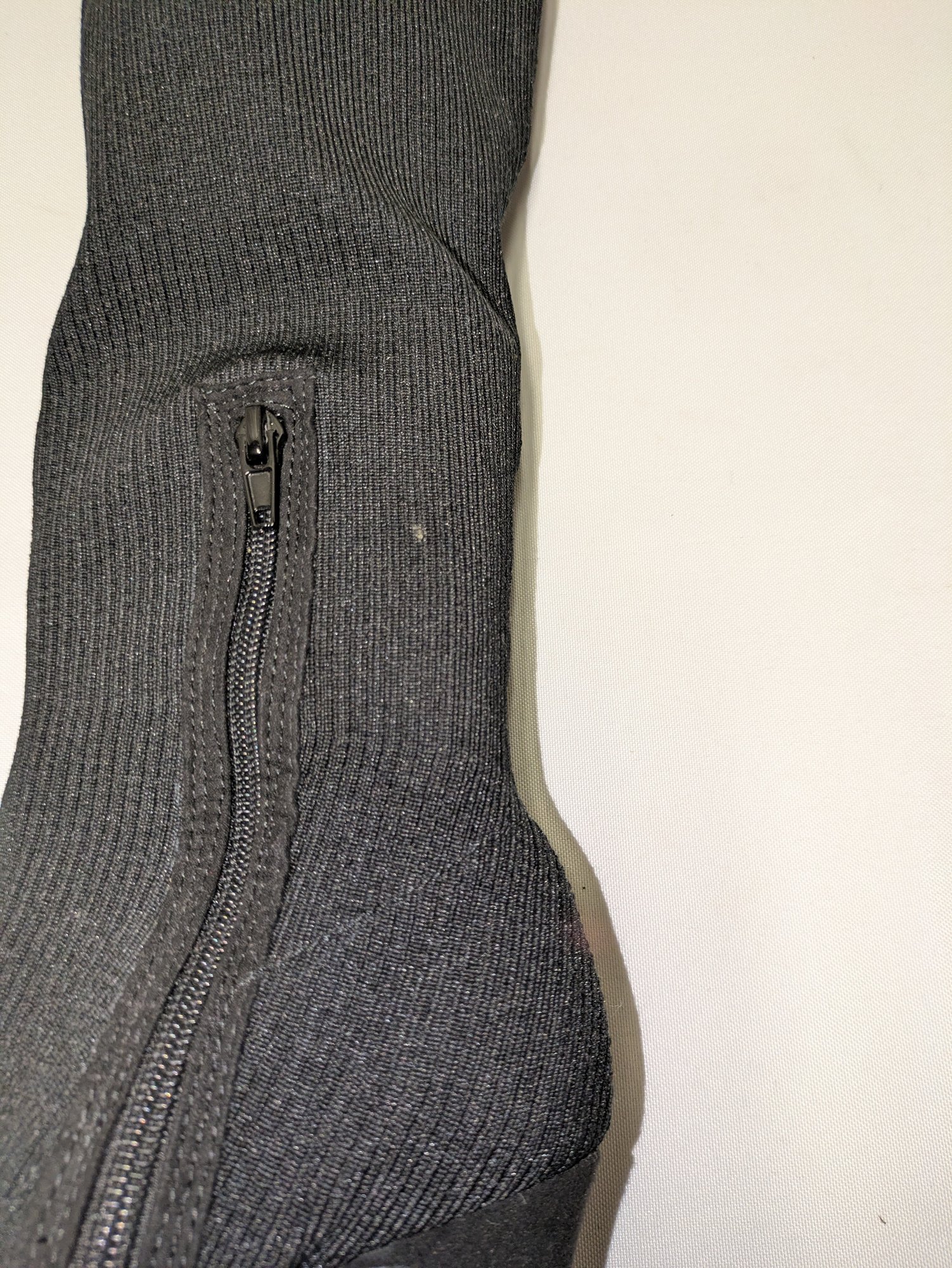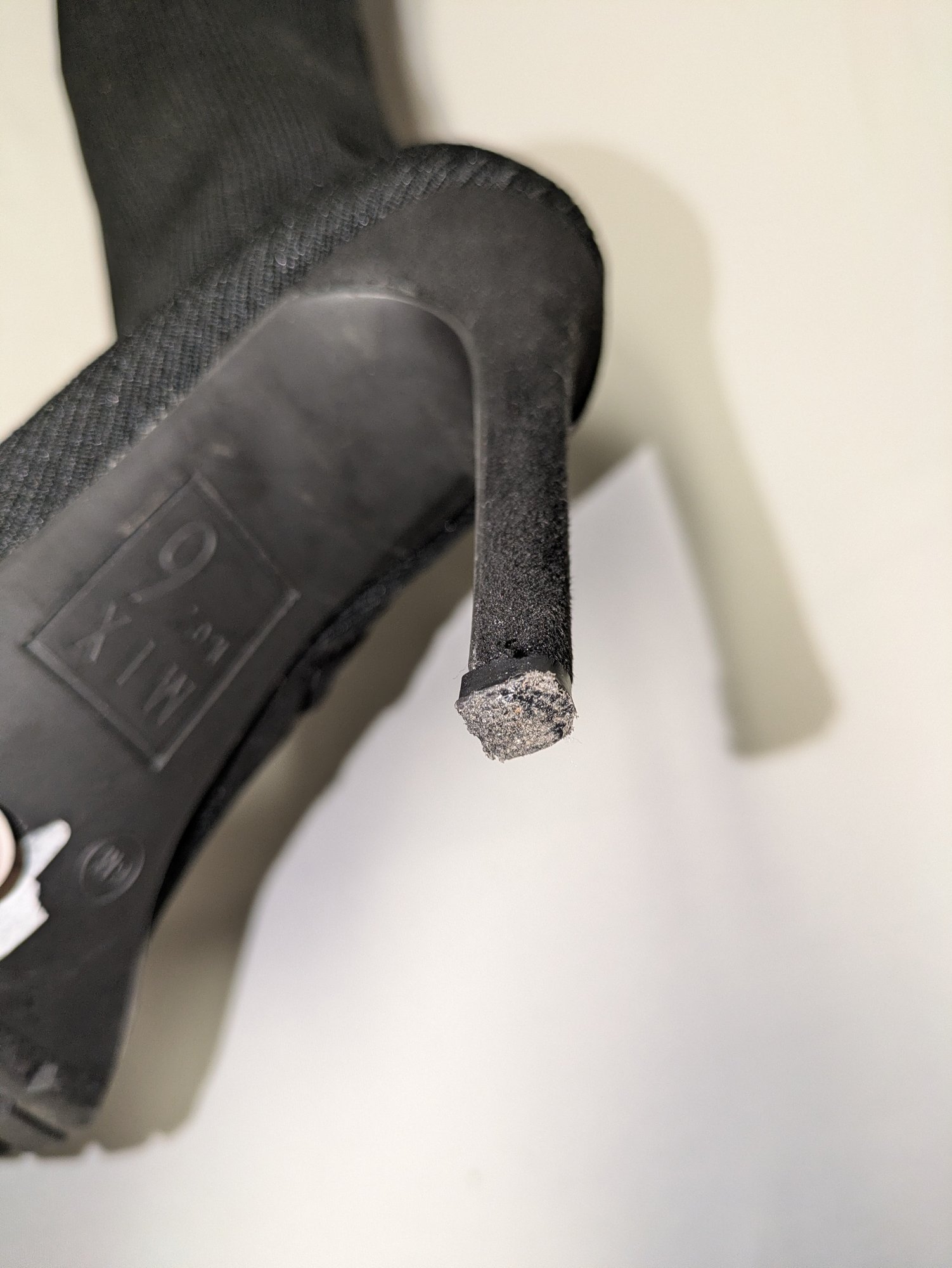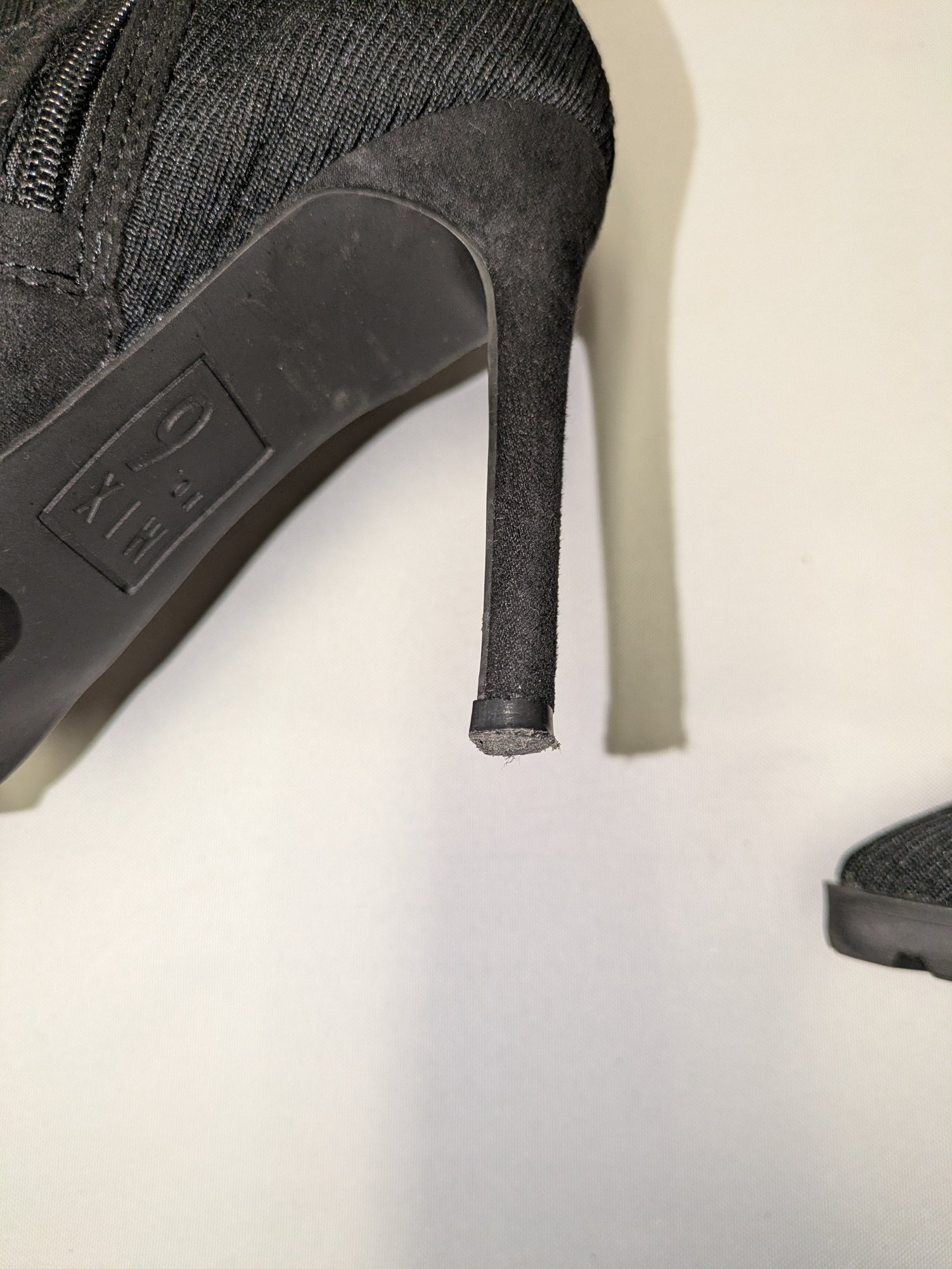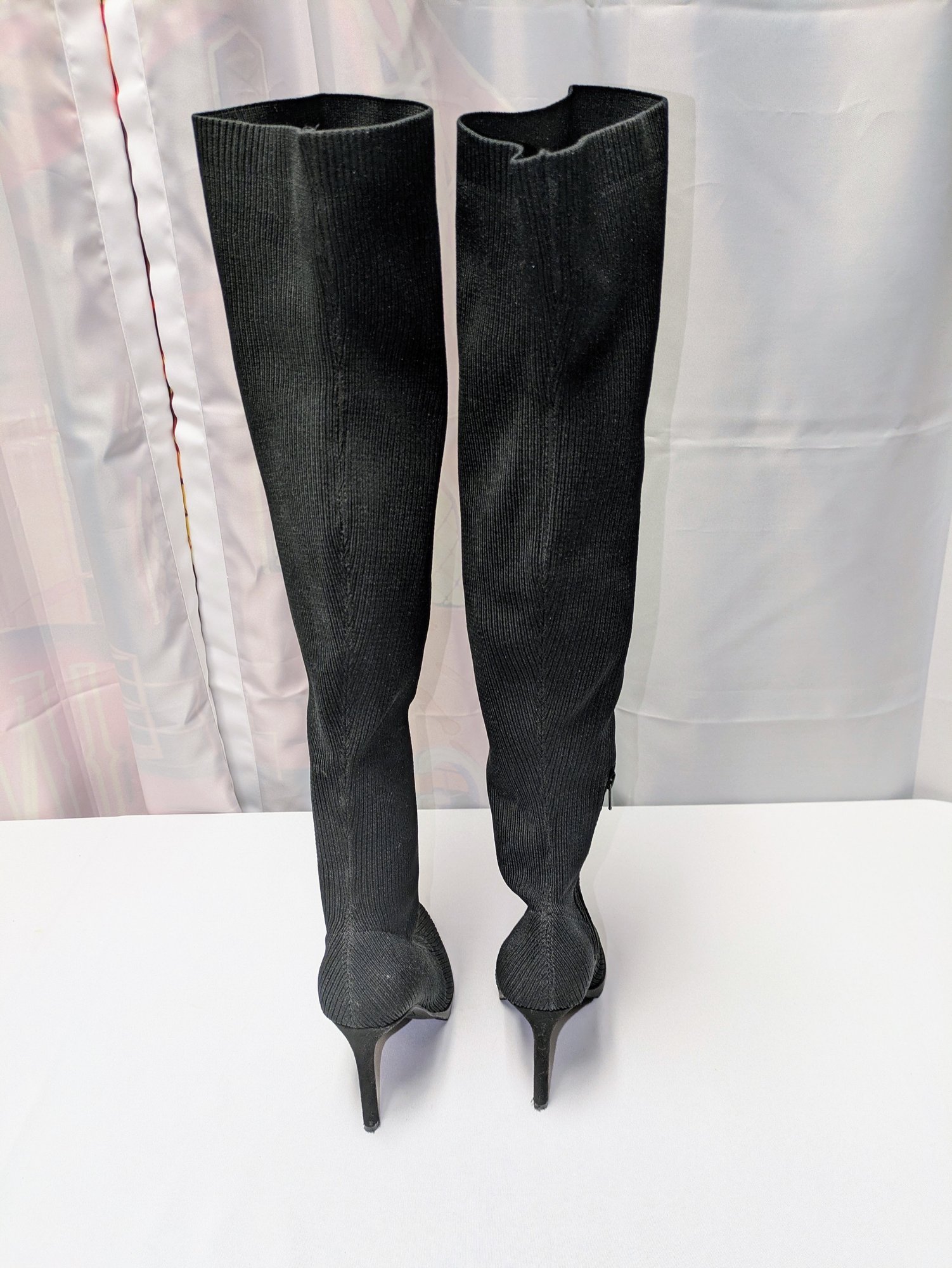 Some light mark (easily cleaned off), like brand new boots. Excellent/ Very Good Condition. Please see all photos as part of the description and condition. Heel 4"H / Boot 24"H (from the bottom of the heel to the top of the boot)