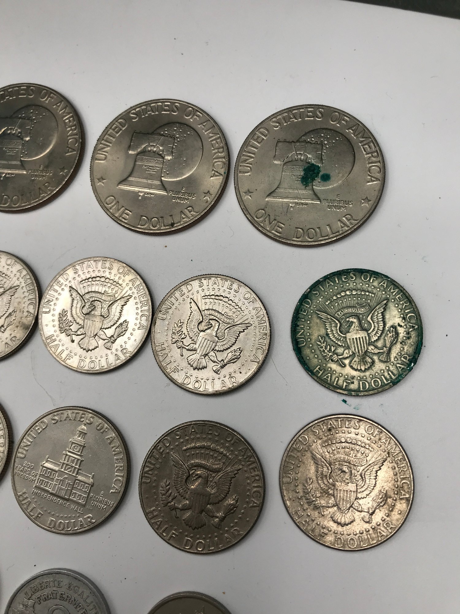 Kennedy Half Dollars spanning various years (including 1970s and 1980s).