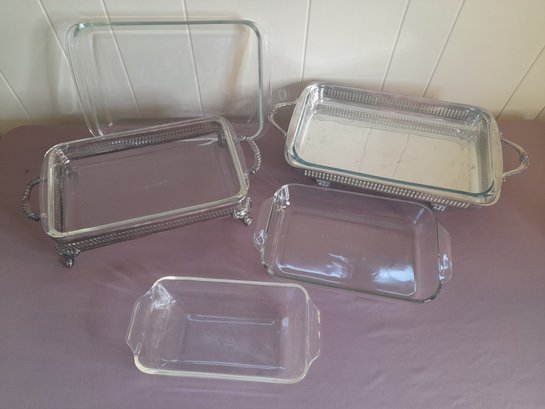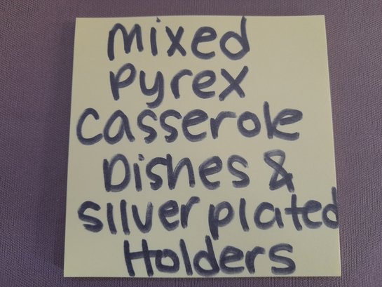 Mixed Pyrex Casserole Dishes & Silver Plated Holders