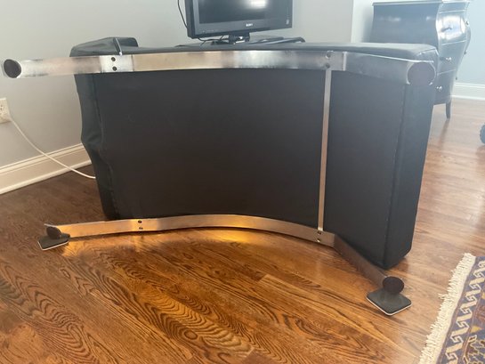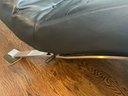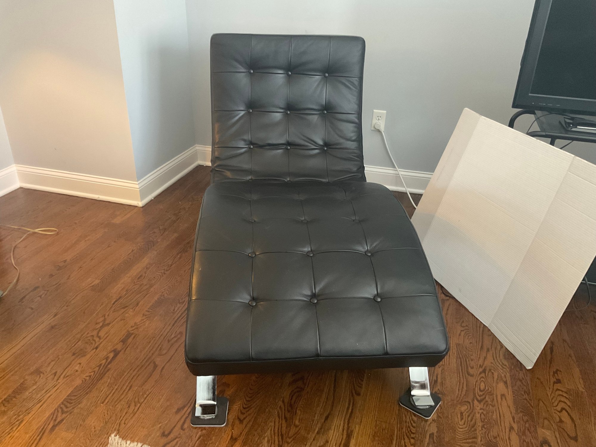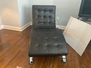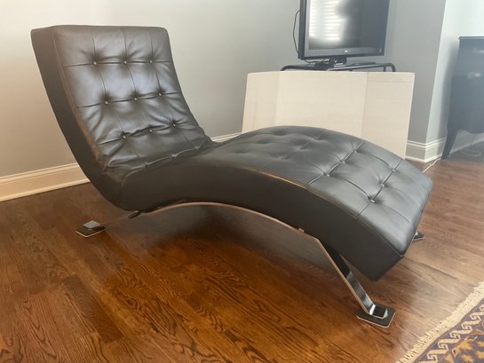 Modern Tufted Leather Chaise Lounge – Curved Contemporary Design with Chrome Base Sleek Silhouette! Features a dramatic curved, wave-like ergonomic frame that flows seamlessly from back to chaise extension, supported by a sturdy polished chrome-plated metal base with angular/splayed legs for a mid-century modern vibe. Armless design maximizes lounging space—perfect for living rooms, bedrooms, reading nooks, or as a chic accent piece. overall excellent condition with no major rips, stains, or structural issues visible. A versatile, luxurious lounger ready to elevate any modern home decor setup! Approximate dimensions based on photo: 65" long x 35" wide x 35" high