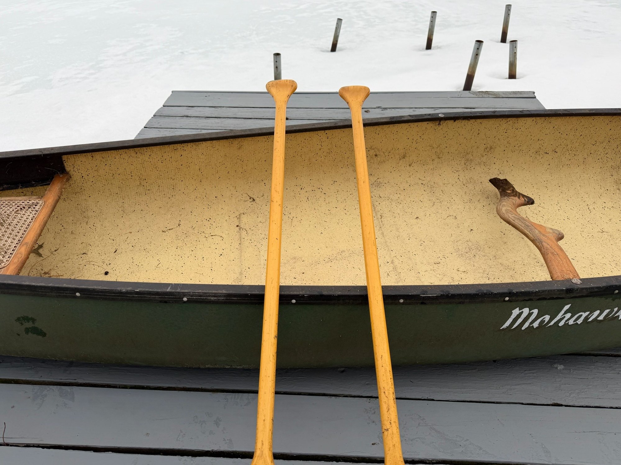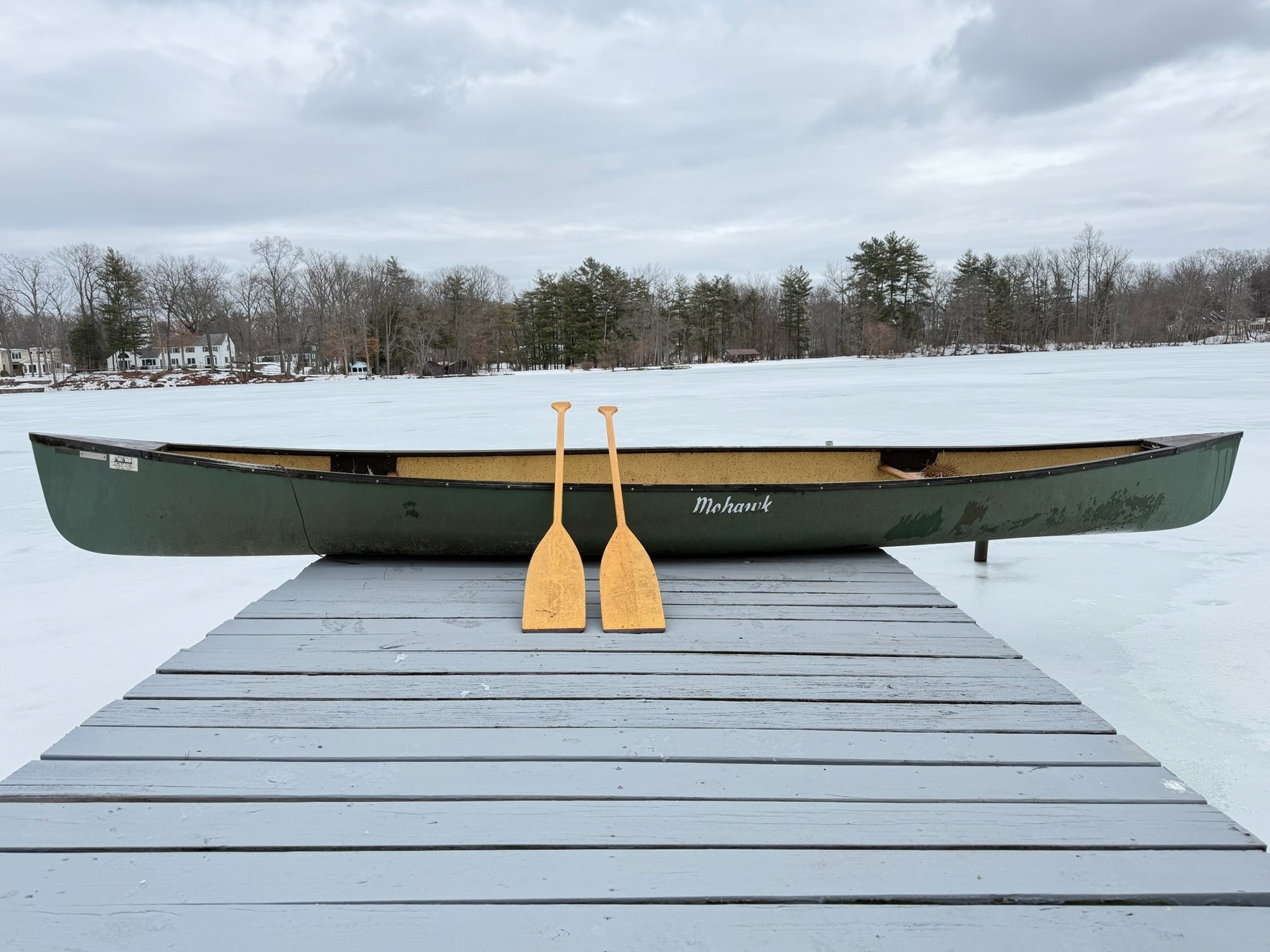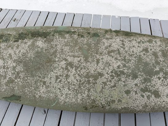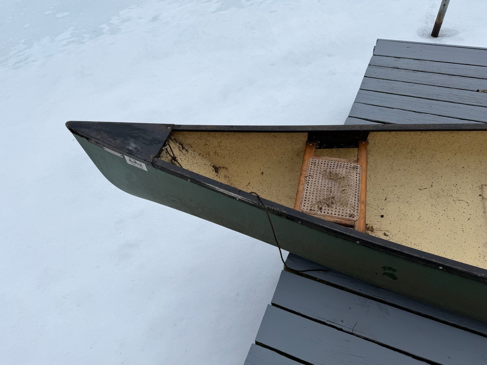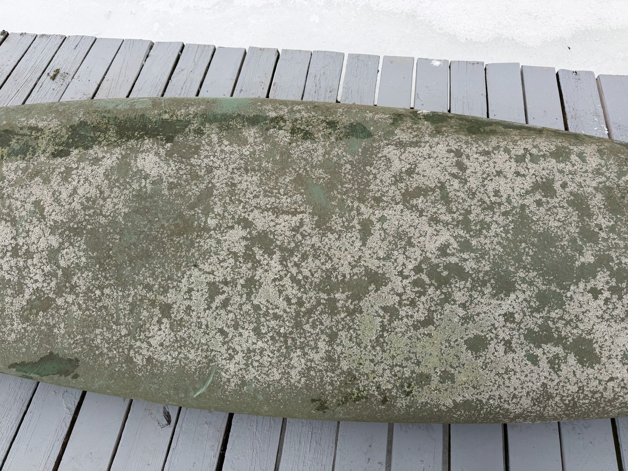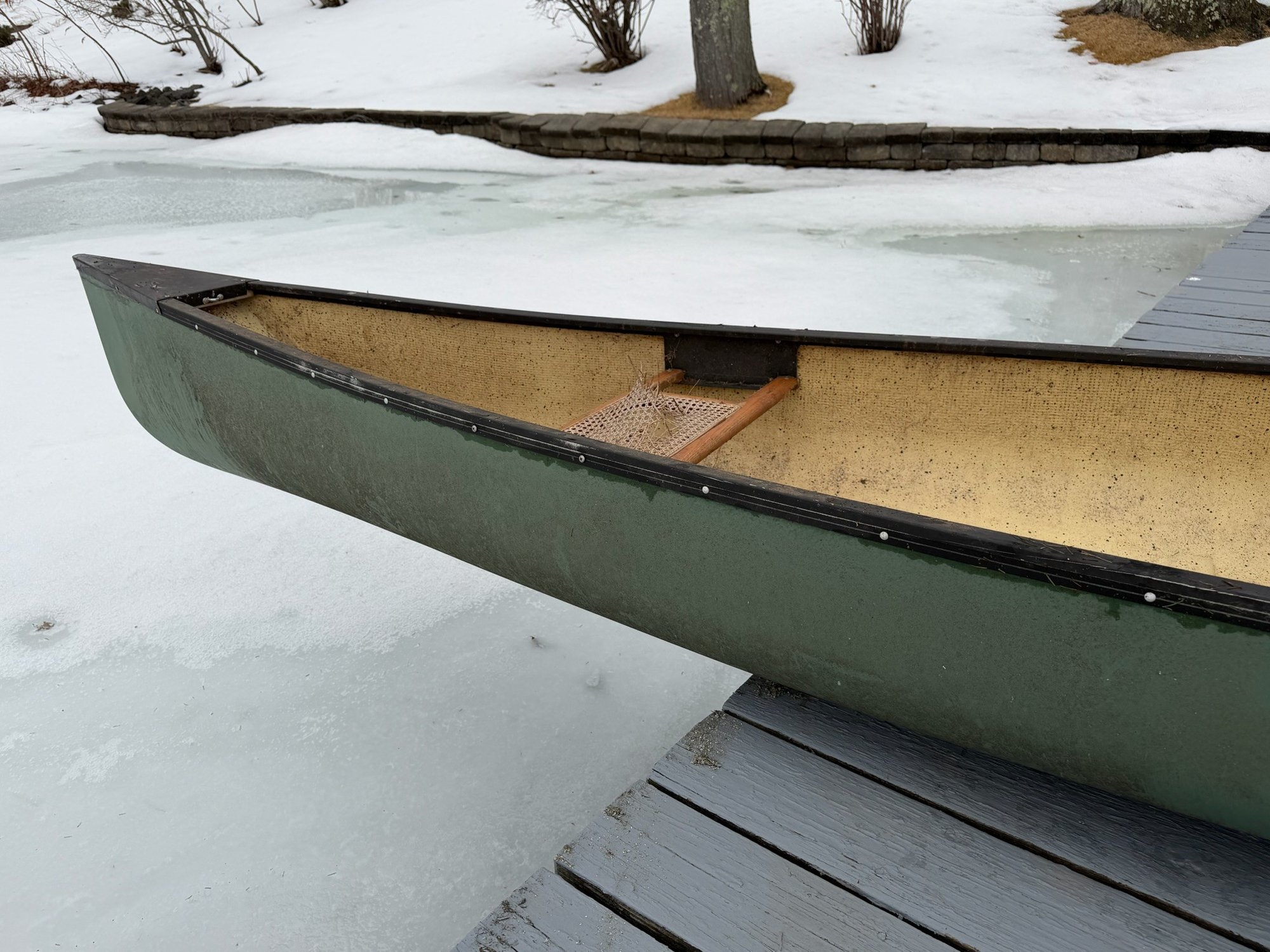 16' length, 34" width. Wood needs replacing, boat was stored upside down, looks like no cracks in hull, needs cleaning. Sold As Is.