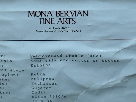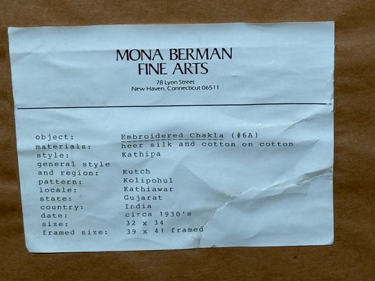 Mona Berman Fine Arts Embroidered Heer silk & Cotton Chakla in an impressive frame