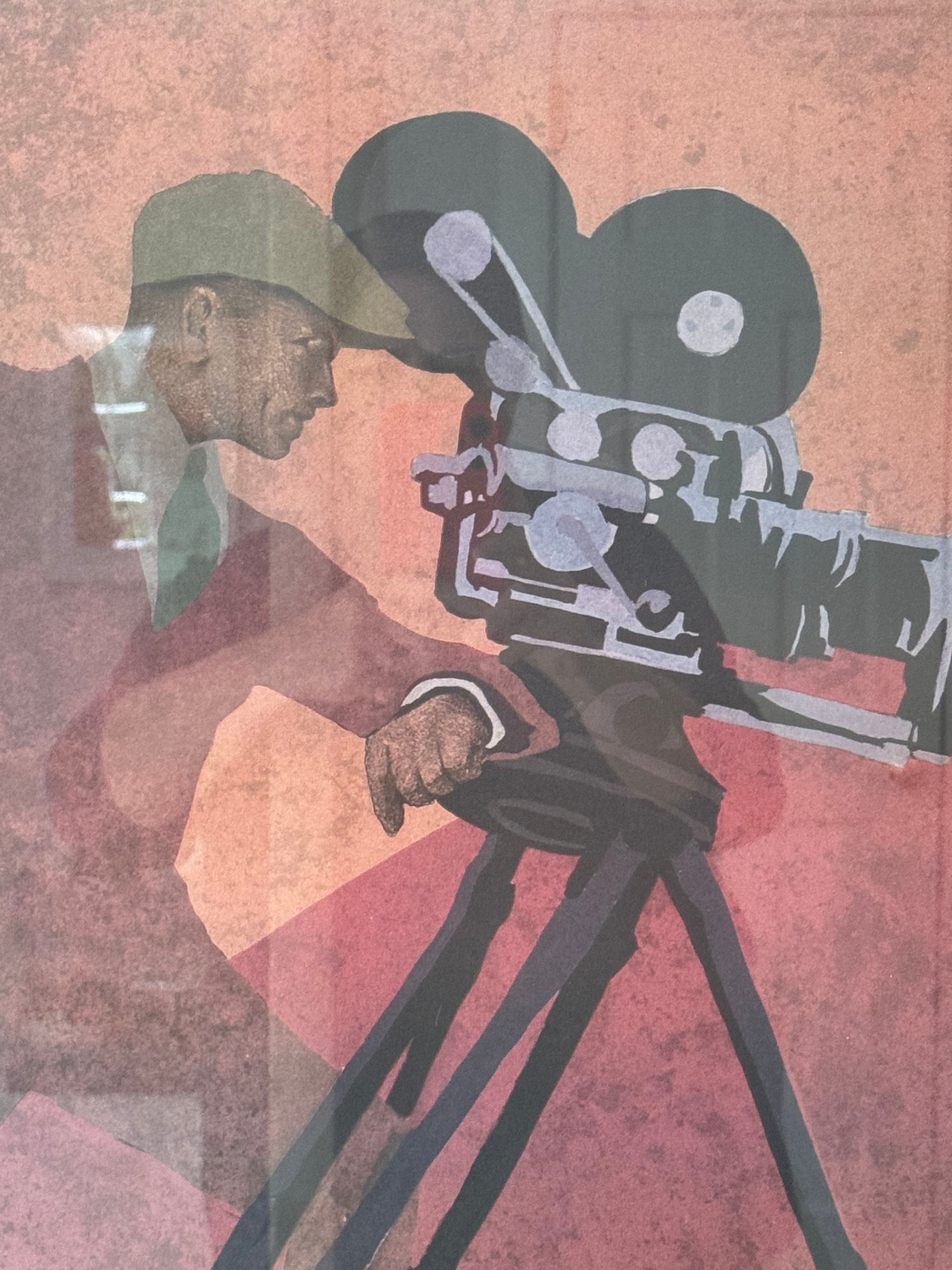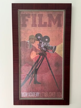 Replica framed print titled FILM. In wood frame with silver border edge. Fabulous image under glass. Frame is as is condition see photos. (a good polish and furniture marker will help restore frame or use as is :) Size 23. 5 W x 41.5 H