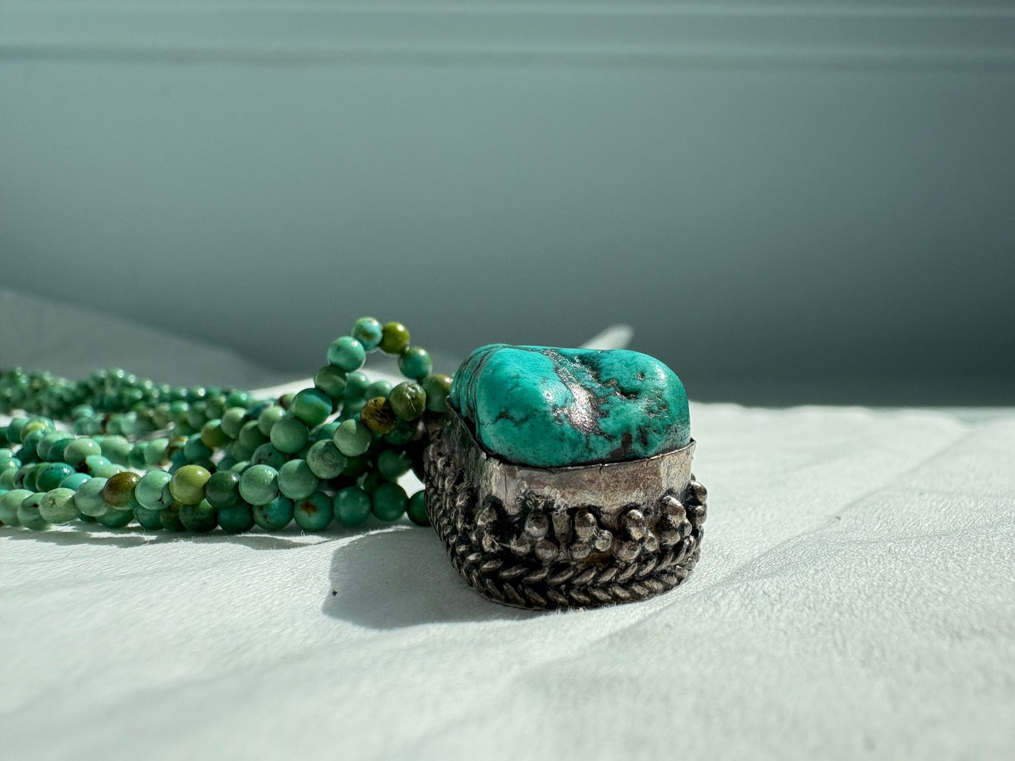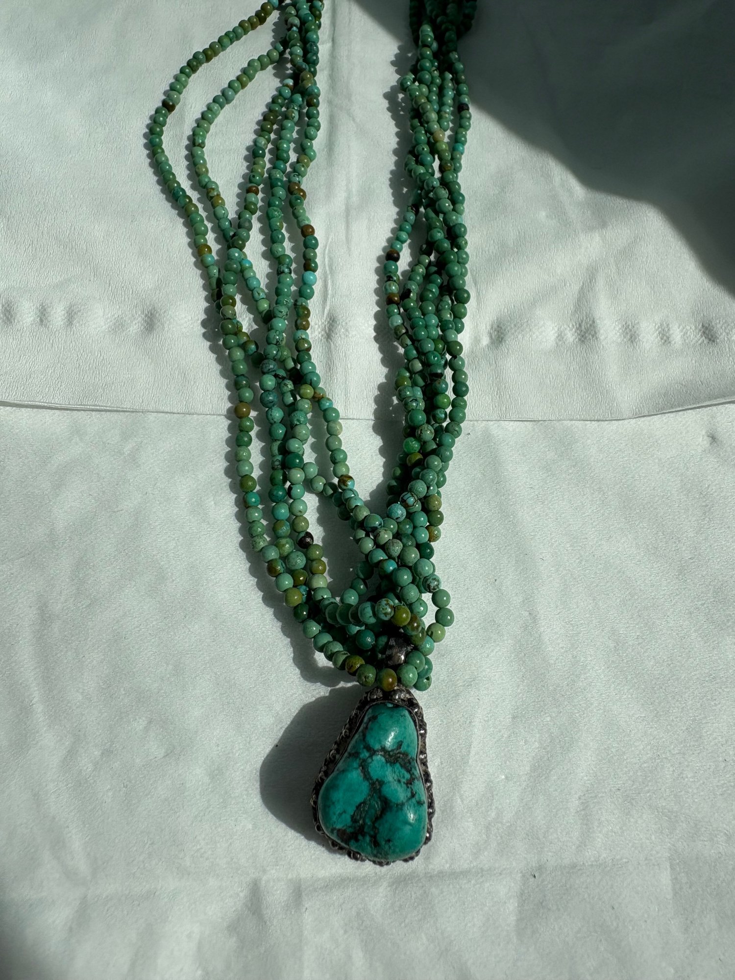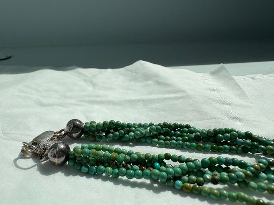 Multi-strand Turquoise Beaded Necklace Is Handmade Native American With Sterling Silver